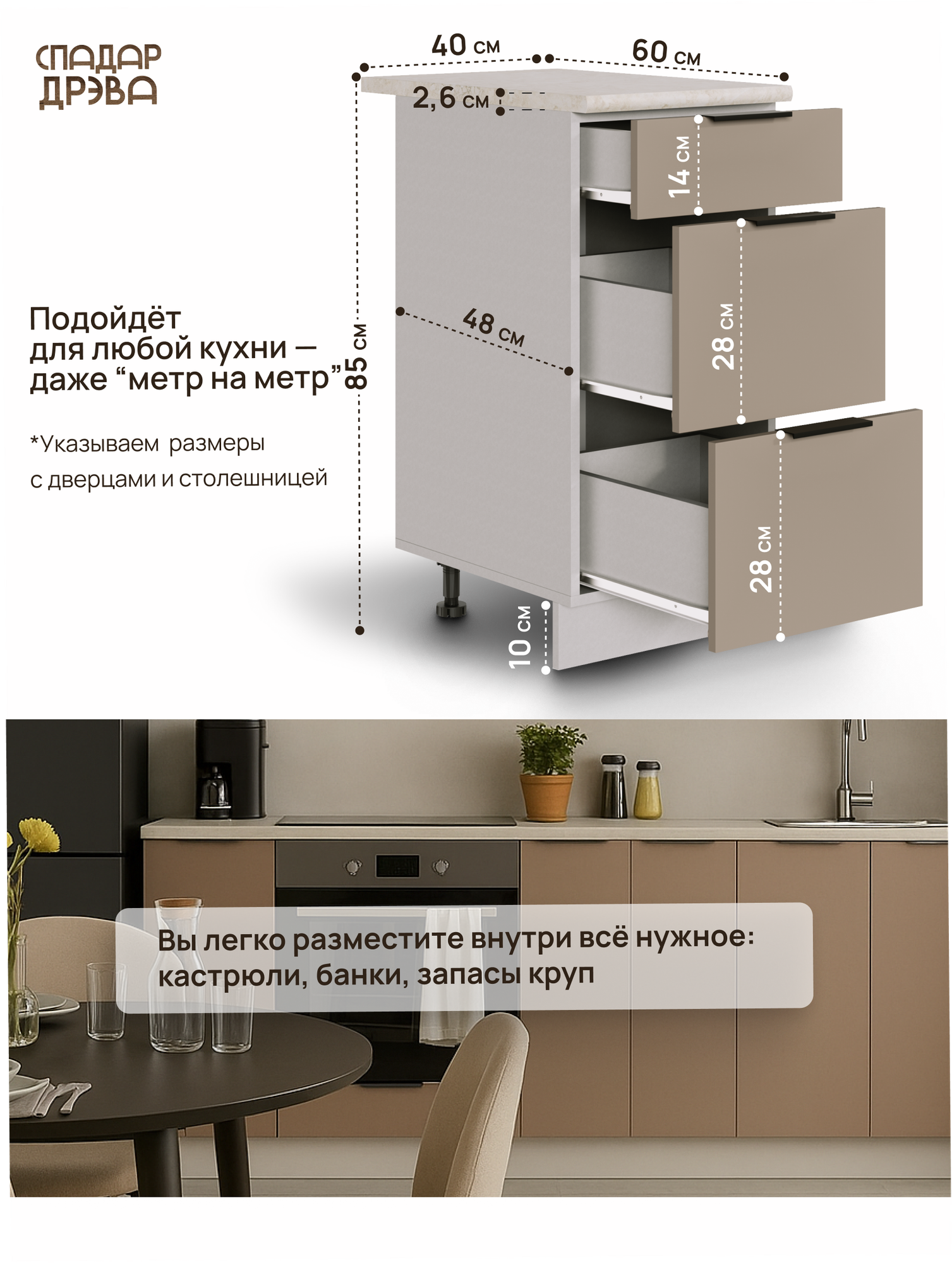 Модуль кухонный напольный, СпадарДрэва, модульная кухня, 400х480х850 мм, МДФ: сравнение цен, характеристики, фото, актуальное наличие и цены.