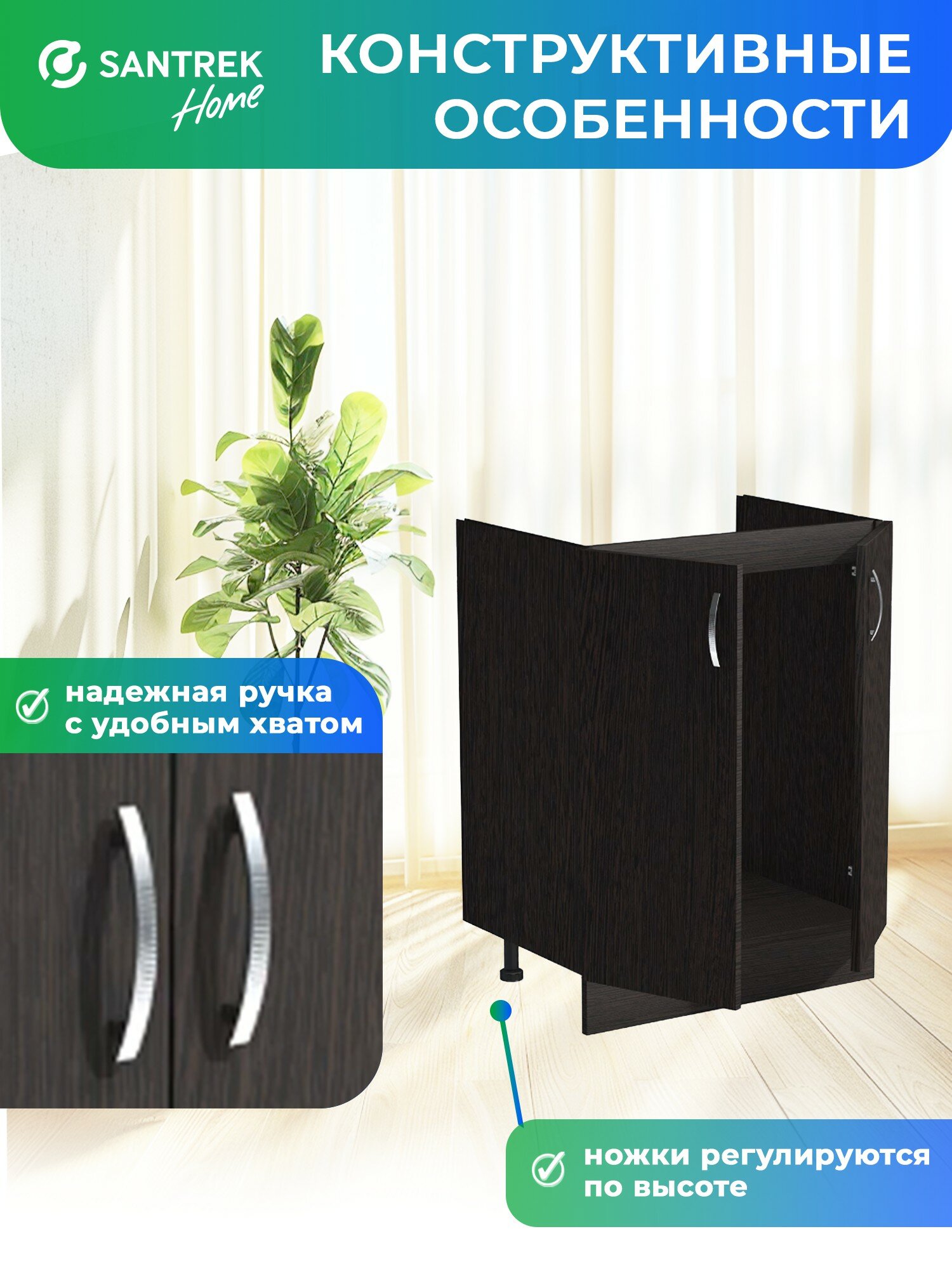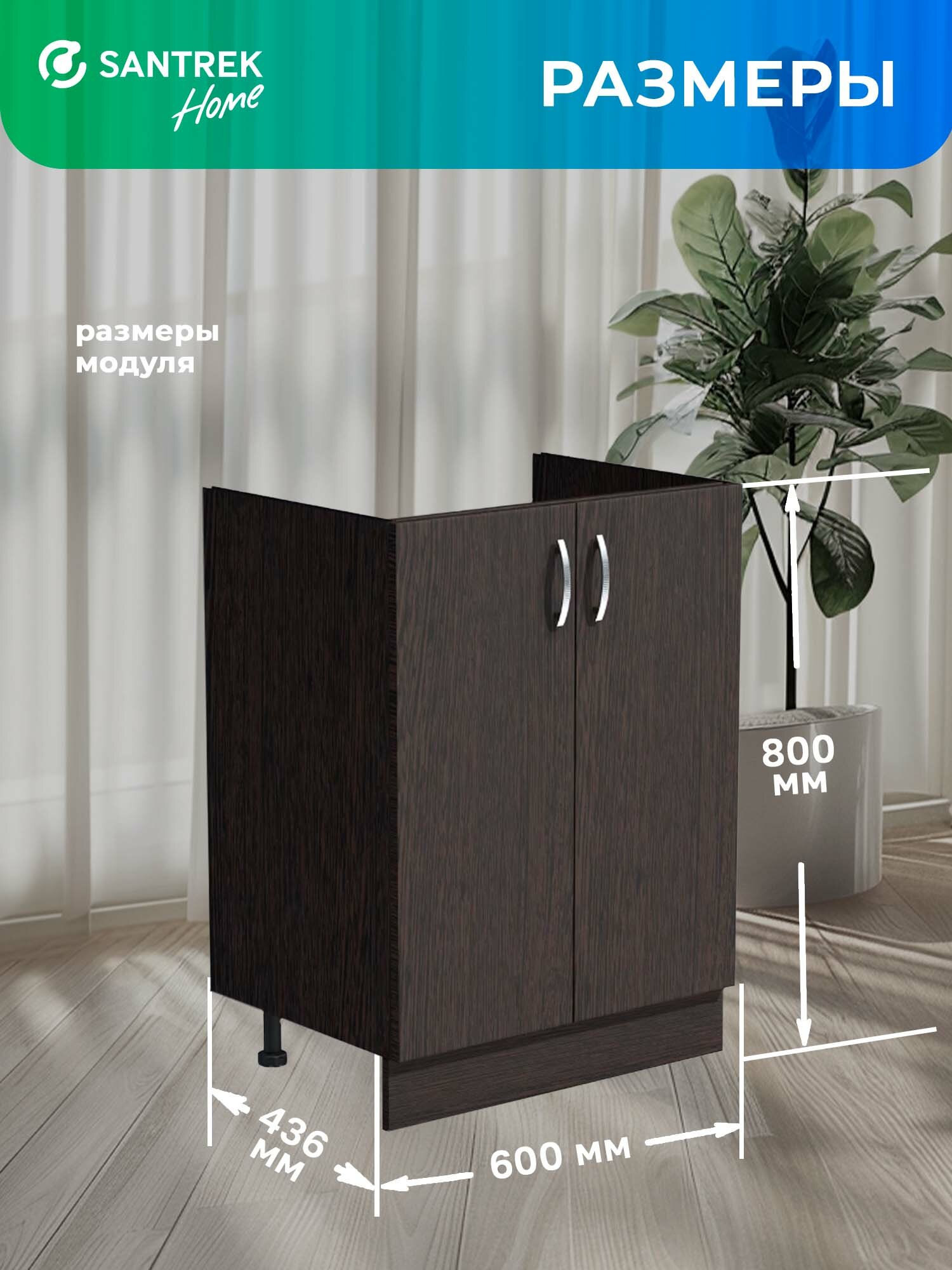 Кухонный гарнитур SANTREK Модуль напольный тумба под мойку 60*50 цвет венге ЛДСП: сравнение цен, характеристики, фото, актуальное наличие и цены.