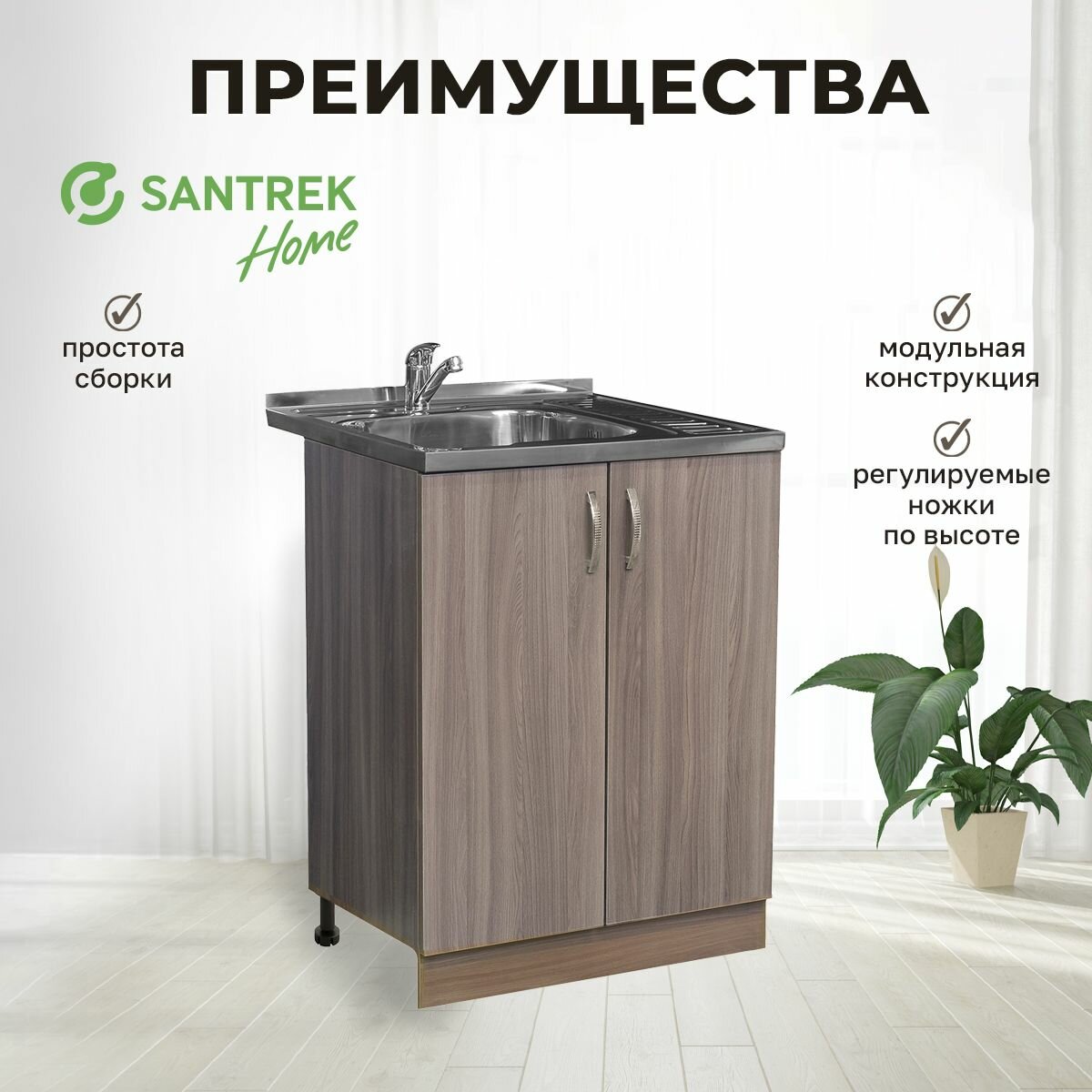 Купить Кухонный гарнитур SANTREK Модуль напольный тумба под мойку 60*60 цвет дуб темный ЛДСП с доставкой по всей России.