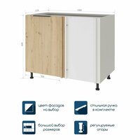 Кухонный модуль шкаф напольный угловой Beneli COLORс доводчиком Дуб дикий/Белый 110х576х82 см для кухни поможет создать идеальный кухонный гарнитур для вашей квартиры дома или дачи. Мы предлагаем приобрести кухонный модуль отдельно и дополнить его тем, что нужно именно вам: напольный или навесной шкаф для крепления на стену, тумба, торцевой шкаф или бутылочница, угловой шкаф или шкаф пенал, шкаф или пенал для встраиваемой техники. Все это вы сможете подобрать по вашим габаритам, размерам и цвету. Она идеальна для тех, кто хочет максимально использовать пространство на кухне и создать функциональный и удобный интерьер. Кухонный шкаф может использоваться как кухонный остров это позволит создать единый стиль интерьера и обеспечивает функциональность помещения. Кроме того, кухонные шкафы могут быть дополнены другими элементами, такими как столешница декоративная фурнитура или система хранения которая поможет максимально использовать пространство, предназначенное для кухонного гарнитура и передать общий стиль вашего дома Представляем вам модульную систему кухни "Колор" для вашего дома - прекрасное решение для создания вашего кухонного уголка. Кухня Колор - это модульная система мебели, комплект из отдельных блоков, которую можно легко собрать в единое, идеально подходящее вам пространство для хранения продуктов в вашем шкафу. В нашем ассортименте вы найдете огромный выбор напольных и подвесных корпусов с дверцами всех типов и размеров, которые позволяют максимально удобно хранить посуду и использовать пространство кухни.