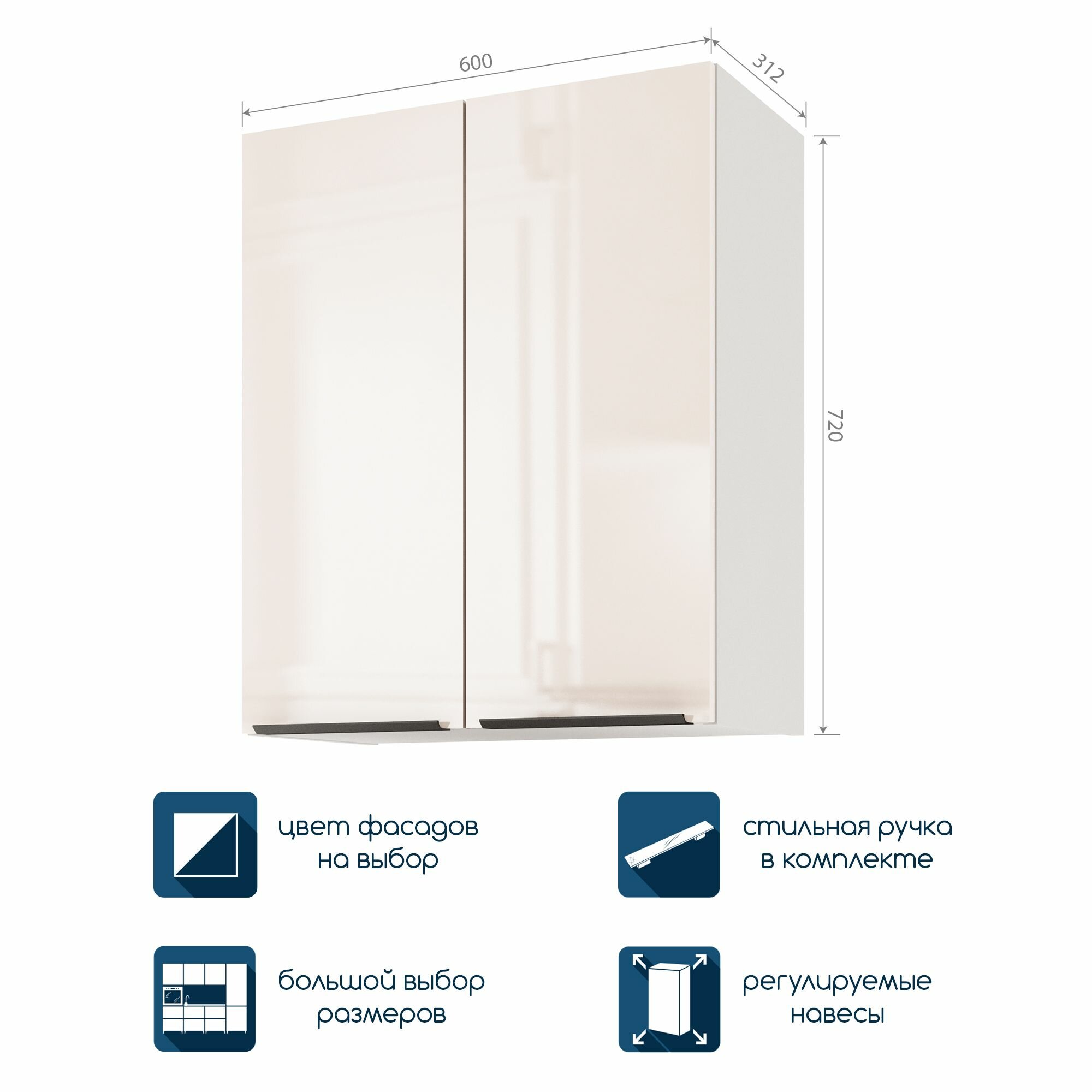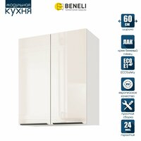 Купить Кухонный модуль навесной Beneli Color, распашной, 2-х дверный, Крем бежевый глянец/Белый, 60х31,2х72 см, 1 шт. с доставкой по всей России.