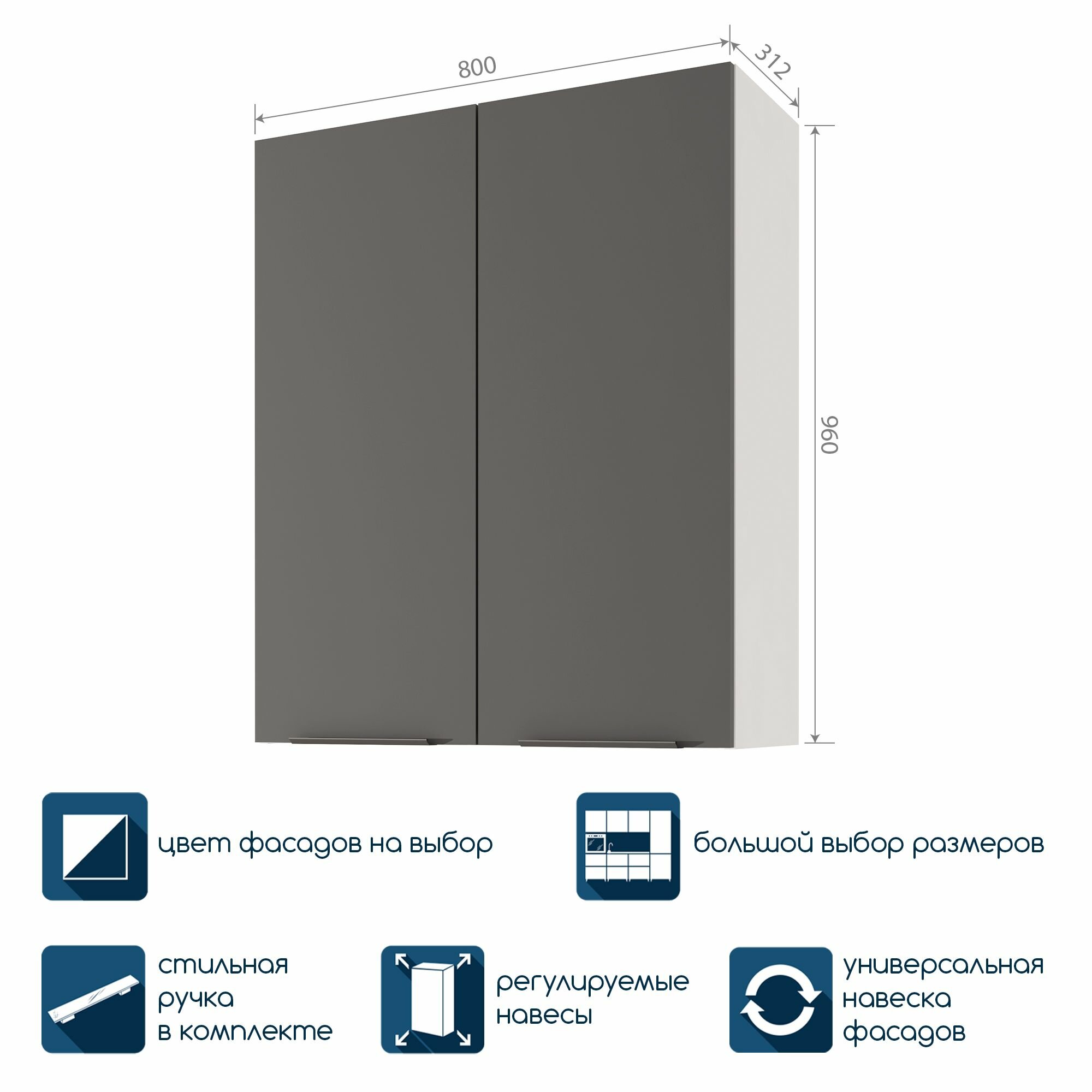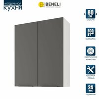 Купить Кухонный модуль навесной Beneli Color, распашной, высокий, 2-х дверный, Черный графит/Белый, 80х31,2х96 см, 1 шт. с доставкой по всей России.