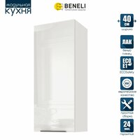 Кухонный модуль навесной Beneli Color, распашной, высокий, Белый глянец/Белый, 40х31,2х96 см, 1 шт.