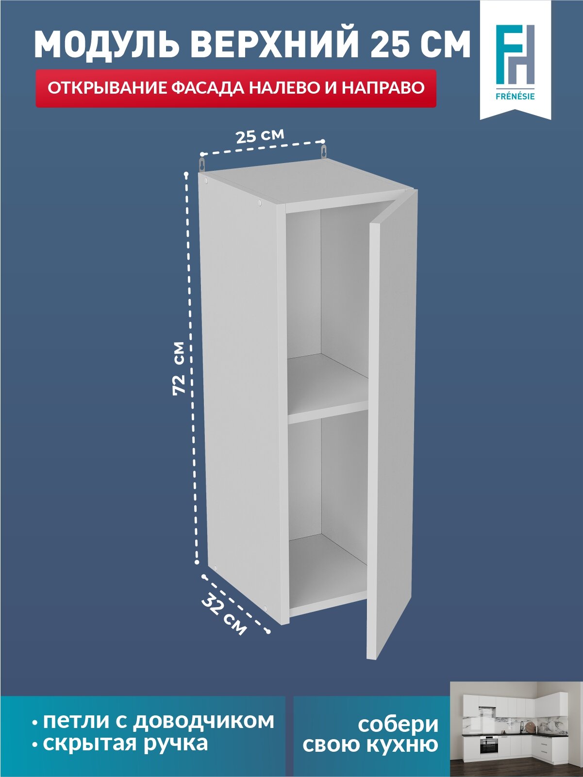 Кухонный модуль навесной Frenesie В250, белый, 25 см, ЛДСП, петли с доводчиками: сравнение цен, характеристики, фото, актуальное наличие и цены.