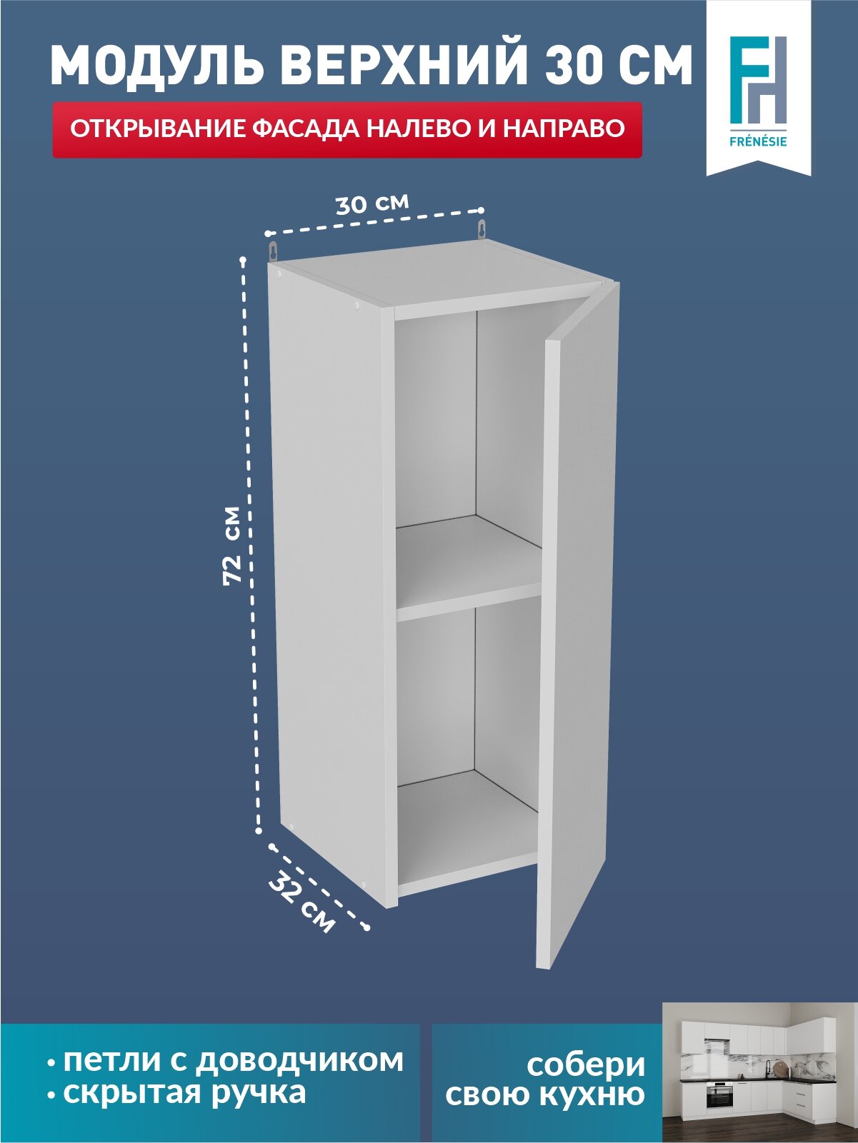 Кухонный модуль навесной Frenesie В300, белый, 30 см, ЛДСП, петли с доводчиками: сравнение цен, характеристики, фото, актуальное наличие и цены.