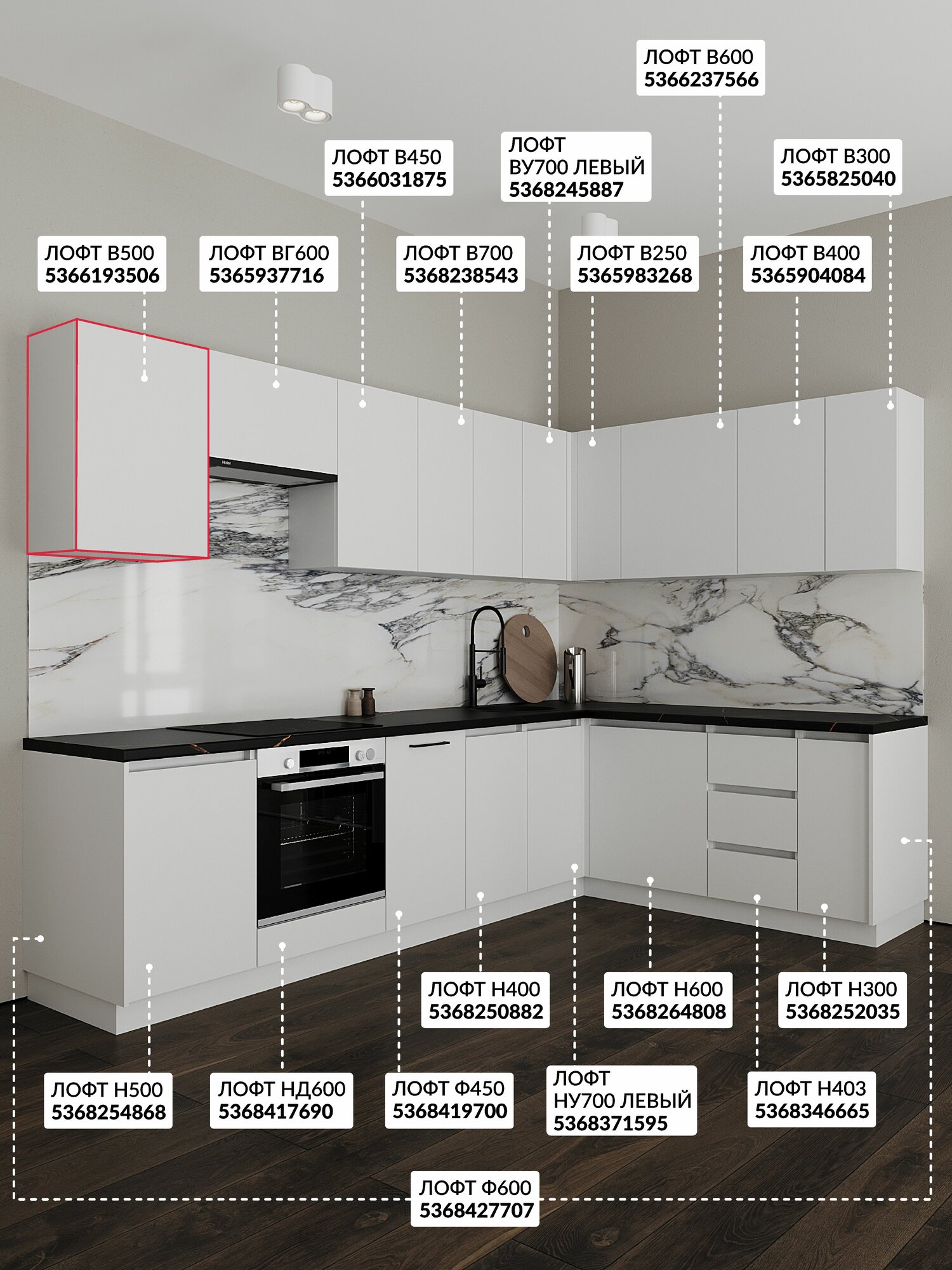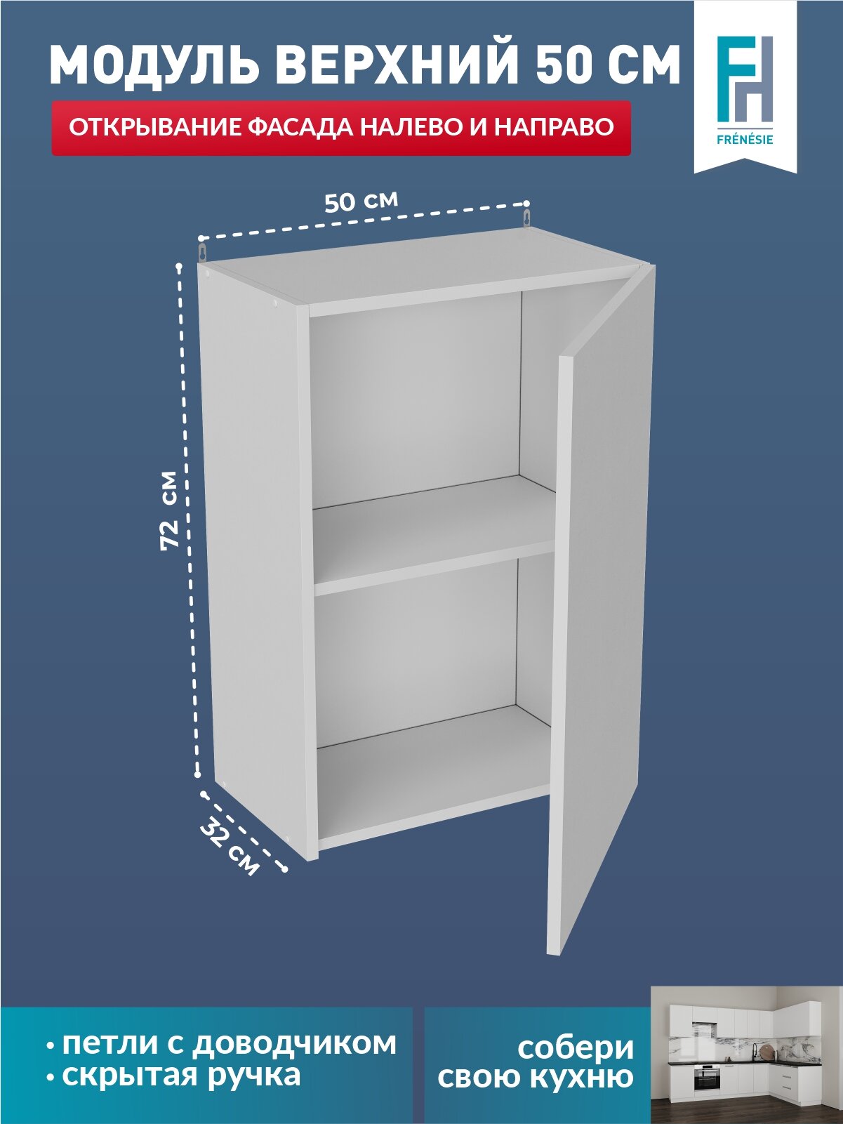 Кухонный модуль навесной Frenesie ЛофтВ500, белый, 50 см, ЛДСП, петли с доводчиками: сравнение цен, характеристики, фото, актуальное наличие и цены.