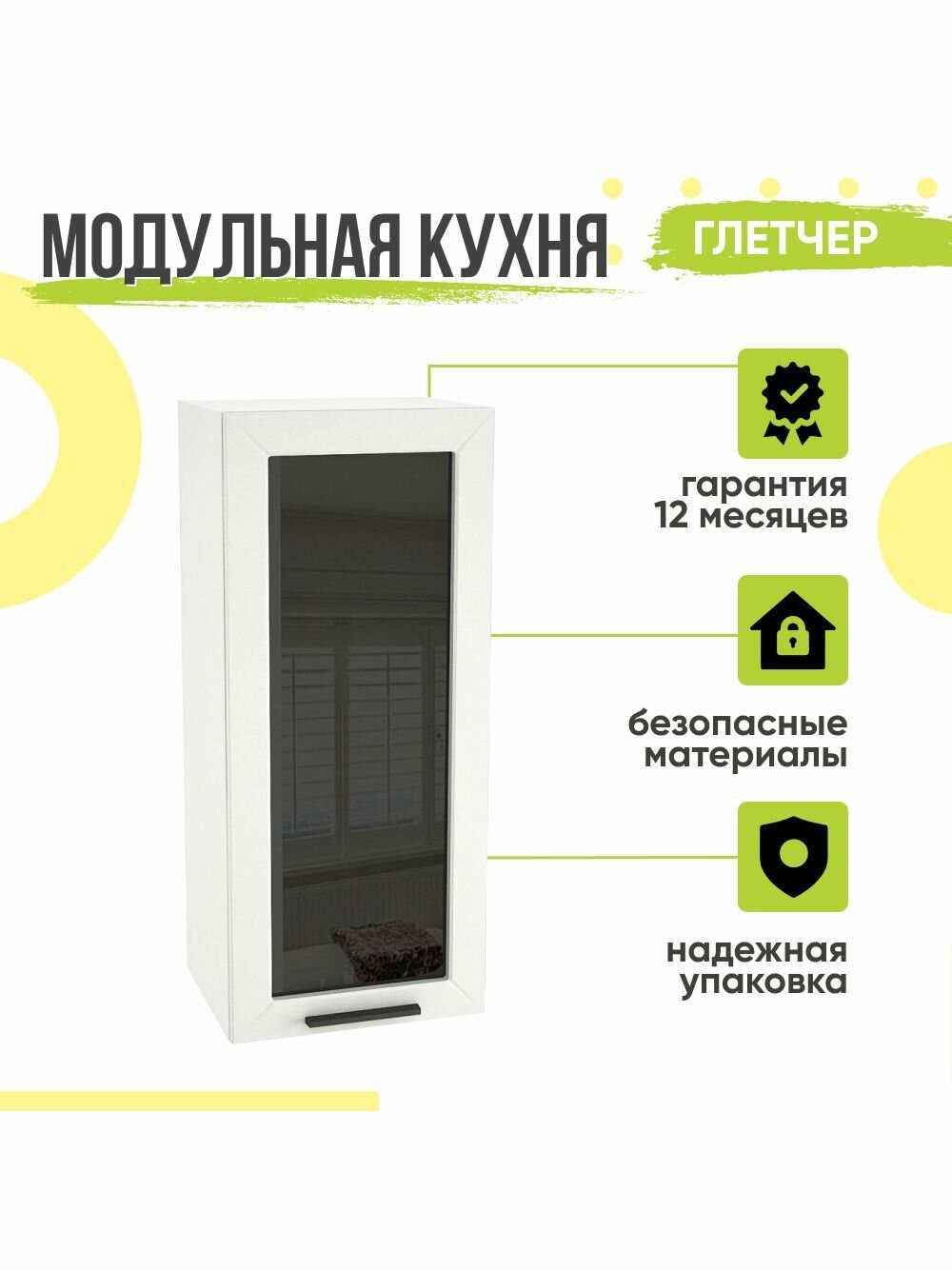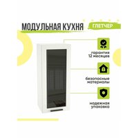 Кухонный модуль навесной Глетчер, 40х31,8х92 мм, со стеклом, Айленд Силк, Сурская мебель: сравнение цен, характеристики, фото, актуальное наличие и цены.