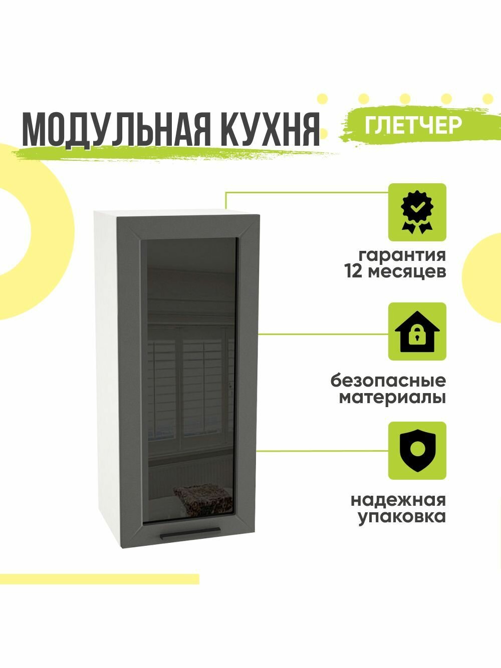 Кухонный модуль навесной Глетчер, 40х31,8х92 мм, со стеклом, Маренго Силк, Сурская мебель: сравнение цен, характеристики, фото, актуальное наличие и цены.