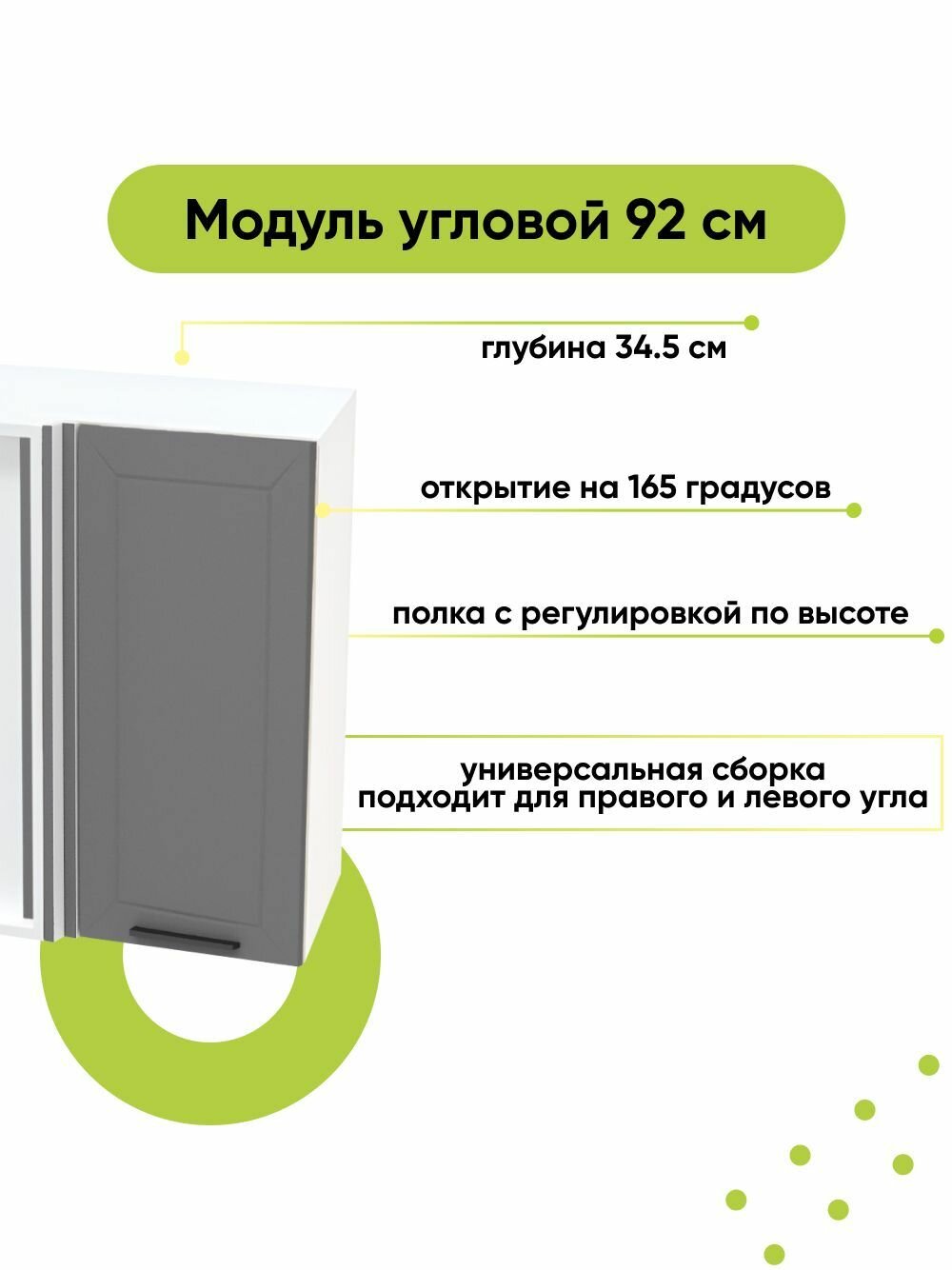 Кухонный модуль навесной Глетчер, 70х34,5х92 мм, угловой, Маренго Силк, Сурская мебель: сравнение цен, характеристики, фото, актуальное наличие и цены.