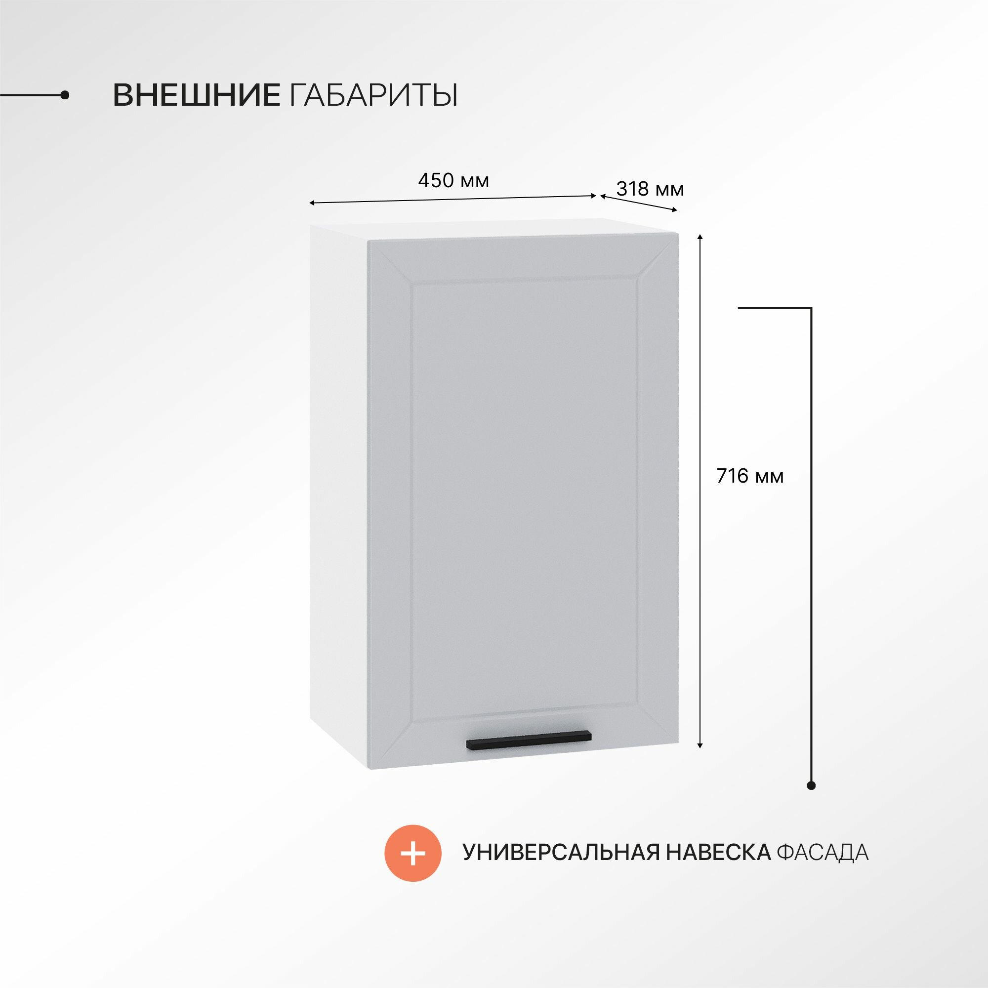Купить Кухонный модуль навесной шкаф Сурская мебель Глетчер 45×31,8×71,6 см с 1 створкой с доставкой по всей России.