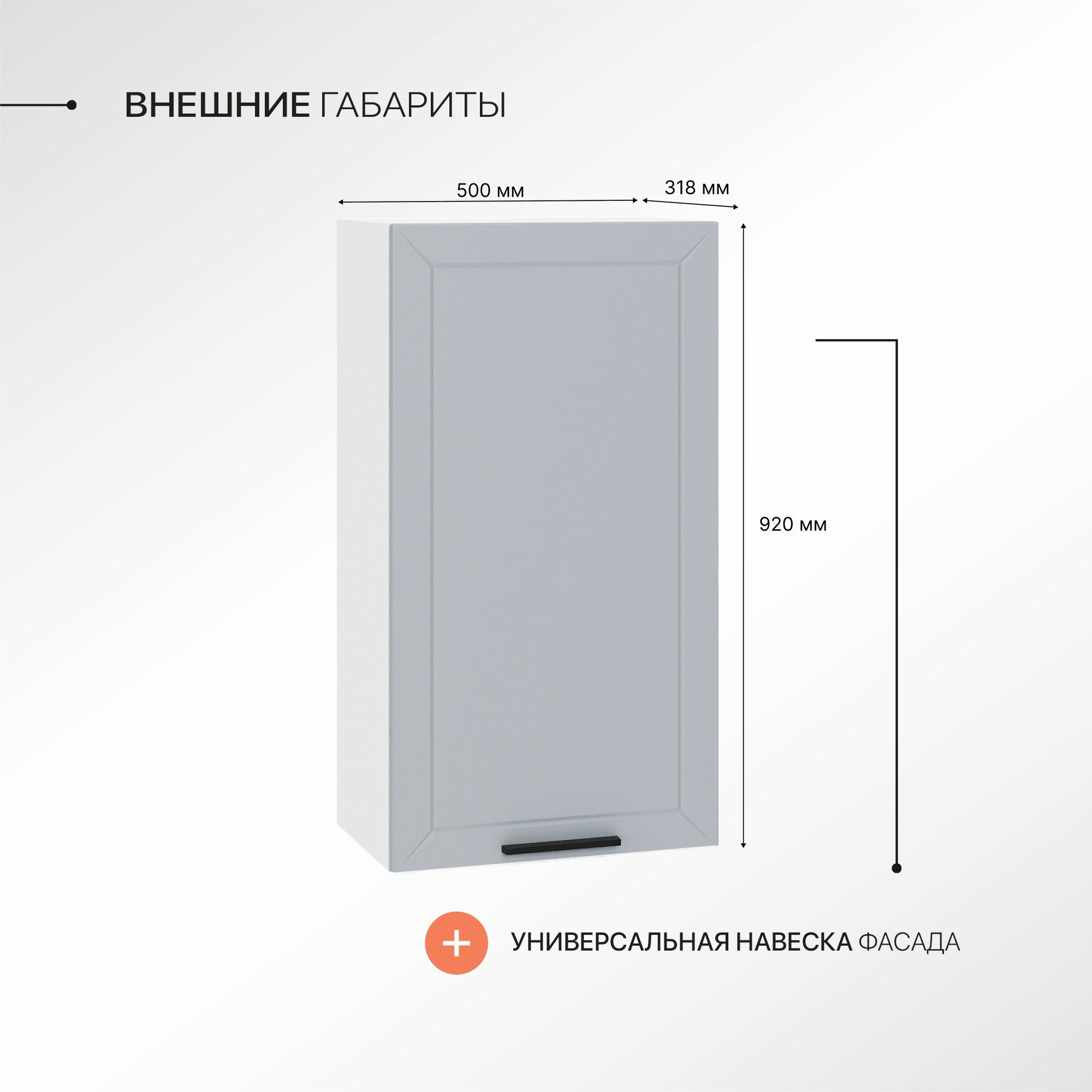 Купить Кухонный модуль навесной шкаф Сурская мебель Глетчер 50×31,8×92 см высокий с 1 створкой с доставкой по всей России.