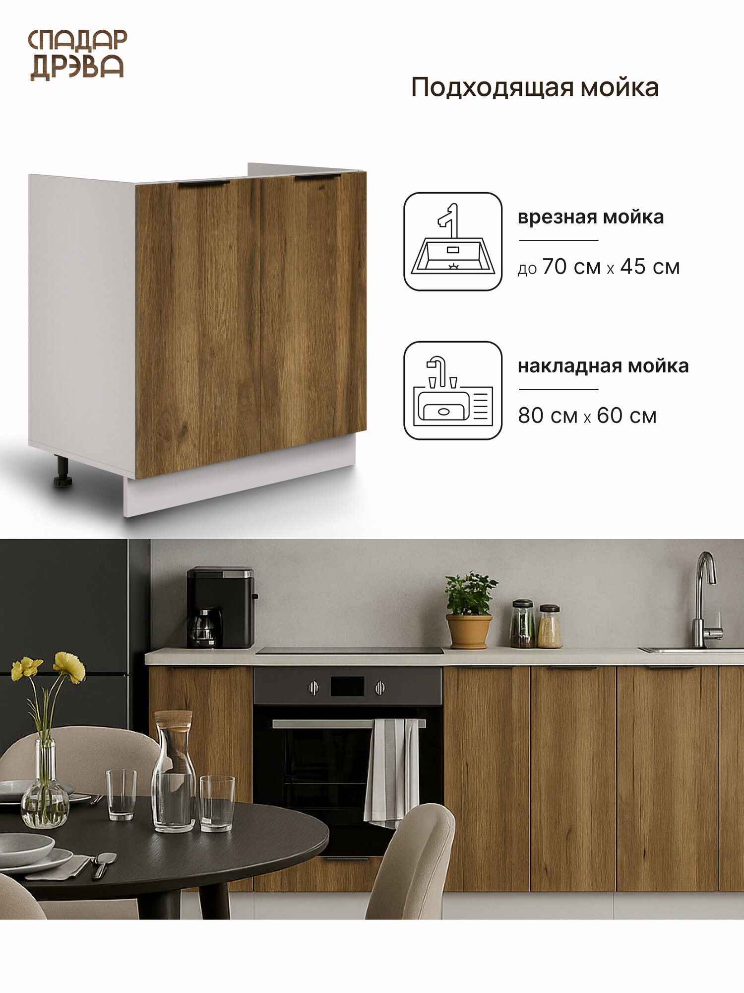 Купить Кухонный модуль под мойку СпадарДрэва, кухня модульная, 800 мм, МДФ с доставкой по всей России. Кухонный модуль под мойку СпадарДрэва, кухня модульная, 800 мм, МДФ: сравнение цен, характеристики, фото, актуальное наличие и цены.