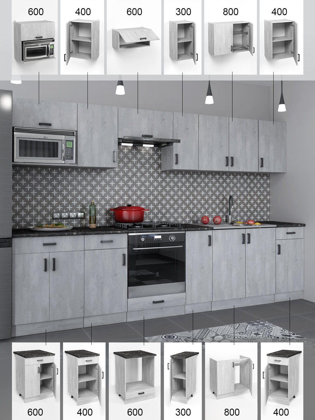 Кухонные модули Грэй — это стильное и функциональное решение для вашей кухни. Они выполнены в элегантном сером цвете, который придаёт помещению современный вид и создаёт атмосферу спокойствия и уюта.