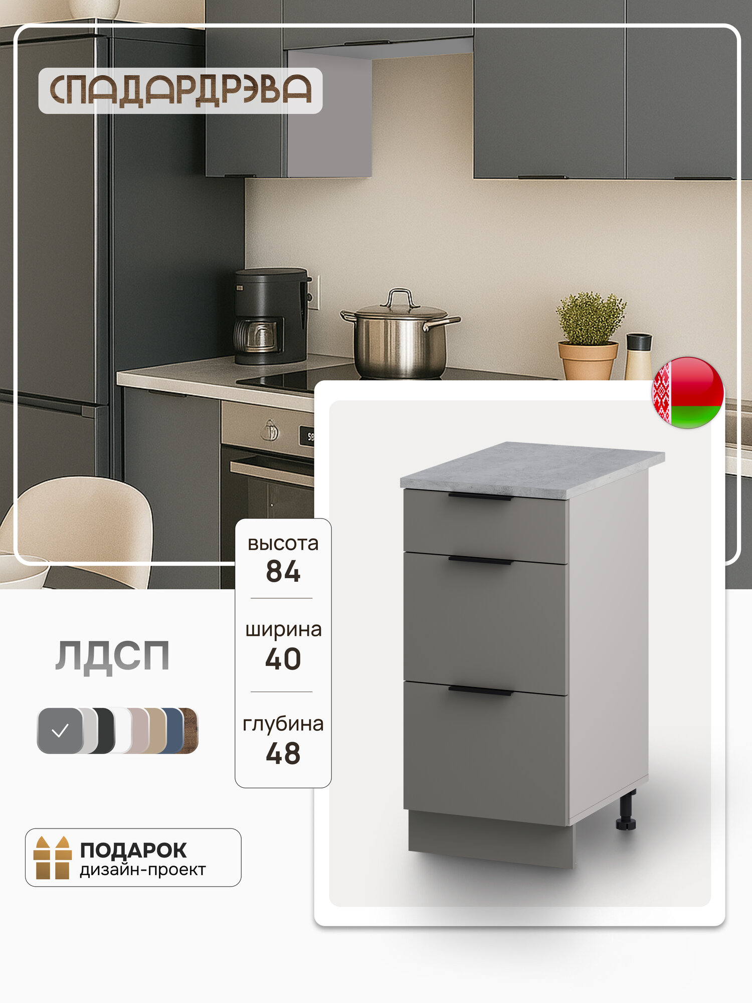 Кухонный модуль с ящиками, СпадарДрэва, кухня, 400 мм, ЛДСП: сравнение цен, характеристики, фото, актуальное наличие и цены.