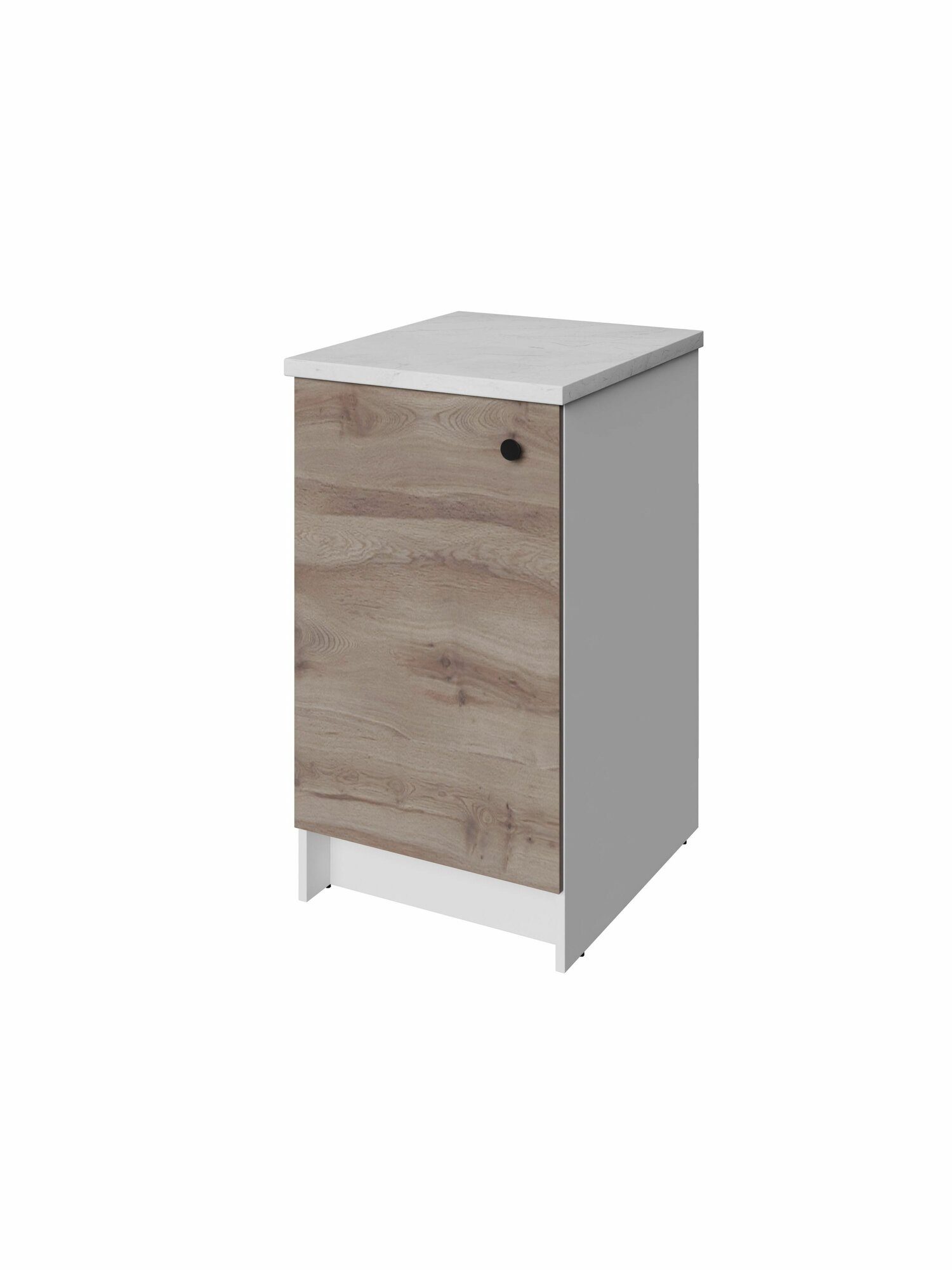 Напольные кухонные шкафы глубиной и высотой больше стандартных, поэтому их вместимость и рабочая поверхность больше на 20%. Модуль плотно встает к стене, комфортная высота позволяет готовить, не наклоняясь. Дверца шкафчика – перенавешиваемая, ее можно установить справа или слева. Внутри кухонного стола предусмотрена 1 полка, которую можно установить на удобной высоте.