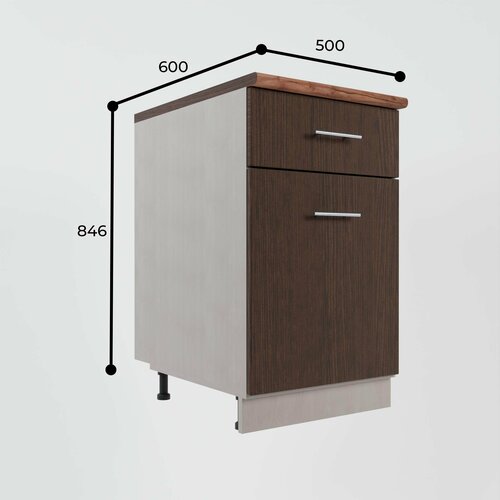 Стол кухонный с 1 ящиком и дверью шириной 500мм, глубина 600мм (по столешнице), высота 846мм