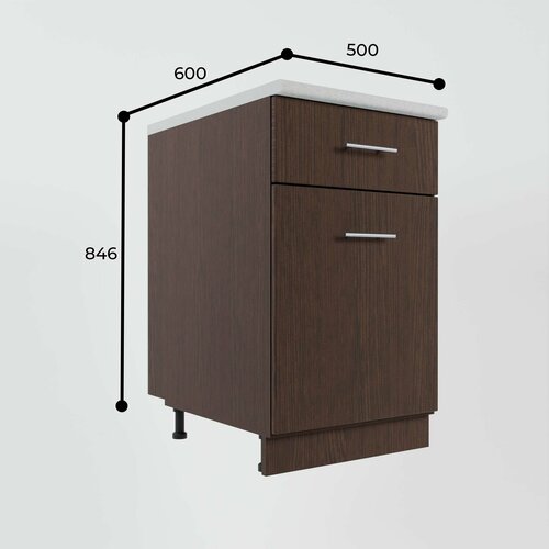 Стол кухонный с 1 ящиком и дверью шириной 500мм, глубина 600мм (по столешнице), высота 846мм