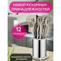 Купить Кухонный набор силиконовый на вращающейся подставке 360 градусов , Набор лопаток для кухни 12 предметов с доставкой по всей России.