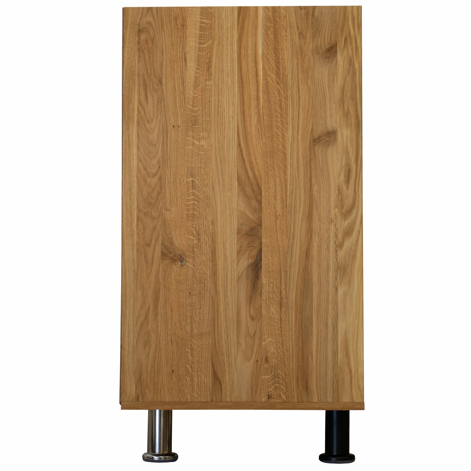 Универсальный напольный кухонный модуль в современном стиле отличается лаконичным дизайном натурального массива дуба и белой поверхности столешницы, что придает уникальность каждому элементу мебели.