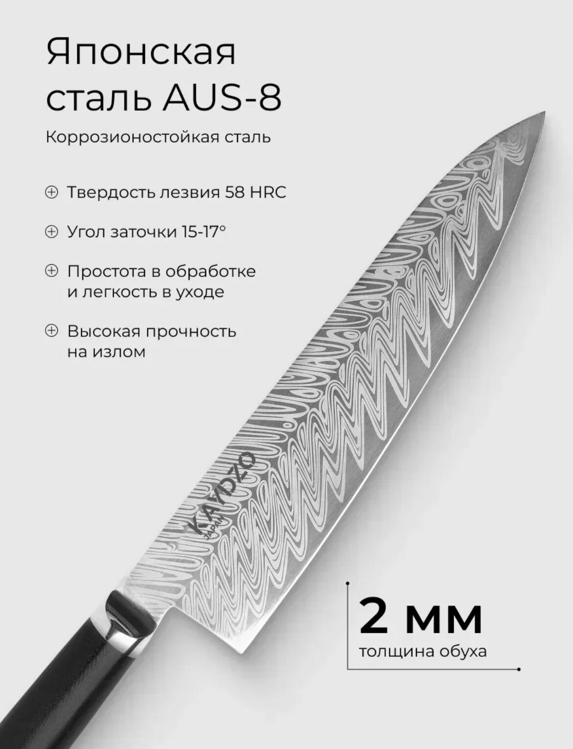 | Особенности | антибактериальное покрытие, в футляре, из дамасской стали, подарочная упаковка |