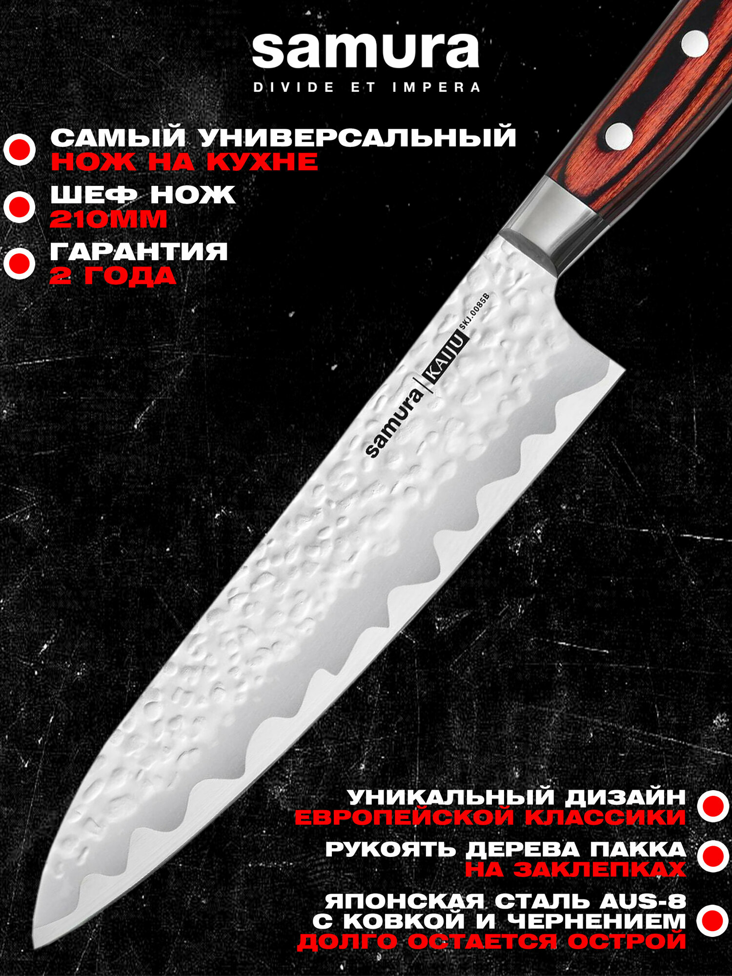 Купить Нож кухонный «Samura KAIJU» Шеф 210 мм, AUS-8, дерево, с больстером, SKJ-0085B с доставкой по всей России. Нож кухонный «Samura KAIJU» Шеф 210 мм, AUS-8, дерево, с больстером, SKJ-0085B: сравнение цен, характеристики, фото, актуальное наличие и цены.