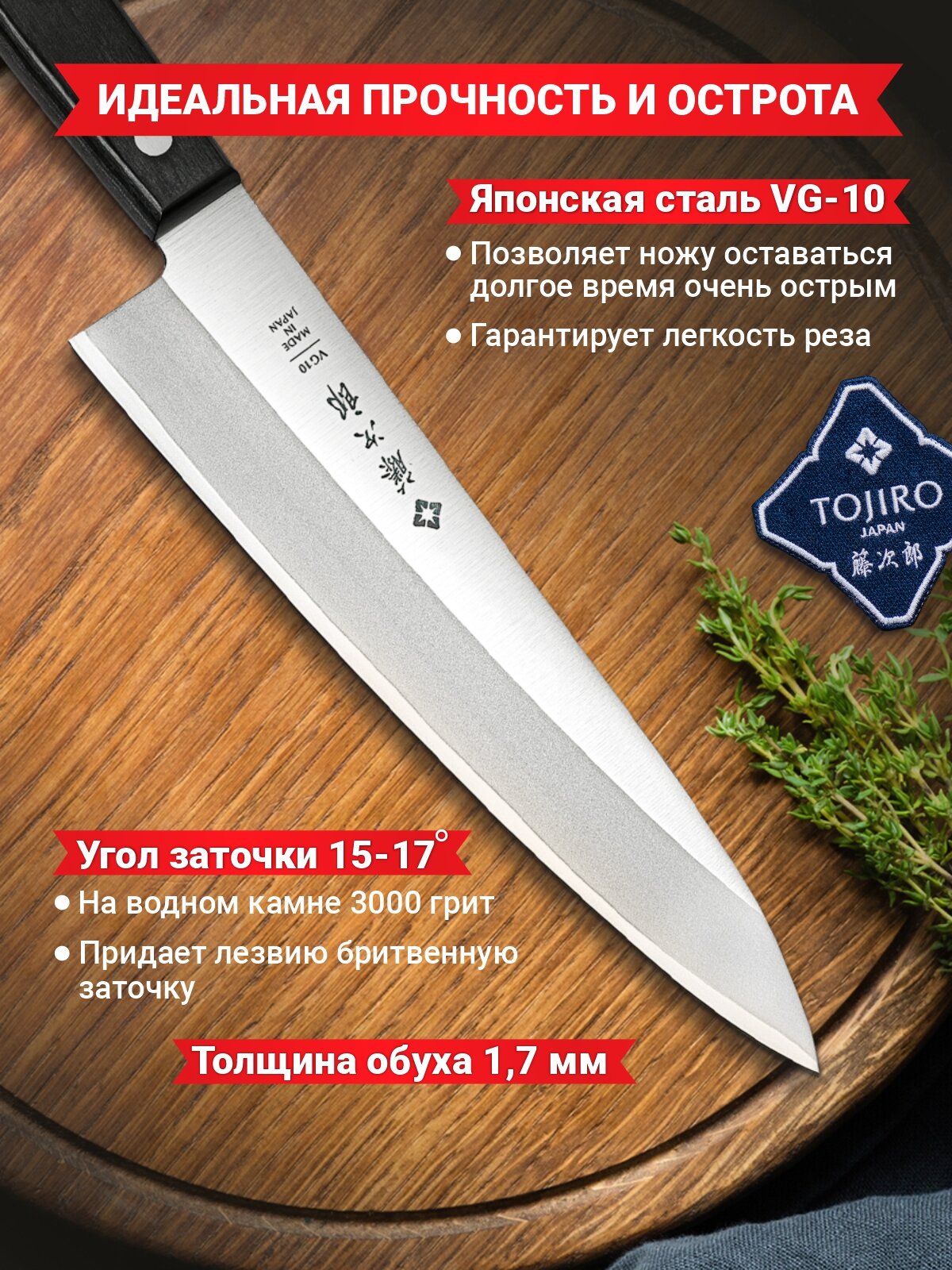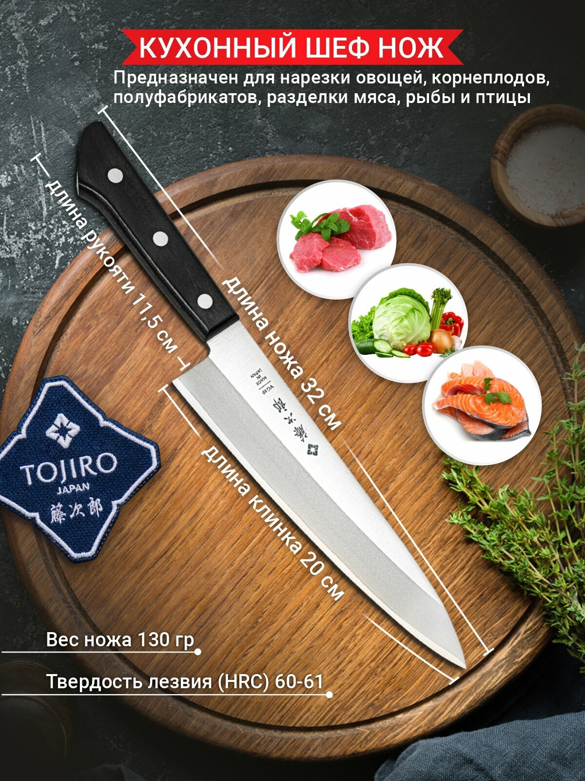 Tojiro, Кухонный нож Шеф, 20 см, сталь VG-10 (3 слоя), для мяса, рыбы, овощей, рукоять дерево, Япония: сравнение цен, характеристики, фото, актуальное наличие и цены.