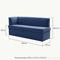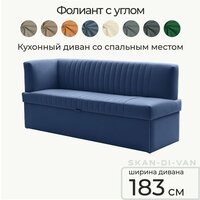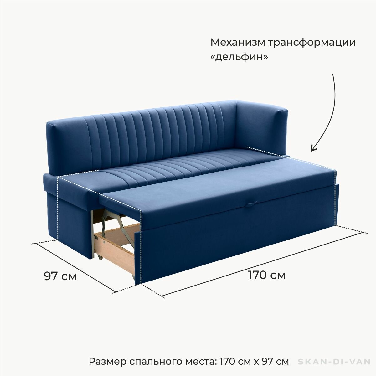Кухонный раскладной диван Фолиант Левый 183х67х84,5 см. Мелиса 20, прямой диван со спальным местом. Цвет: Синий: сравнение цен, характеристики, фото, актуальное наличие и цены.