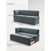 Кухонный раскладной диван Фолиант Левый 183х67х84,5 см. Мелиса 35, прямой диван со спальным местом. Цвет: Серый: сравнение цен, характеристики, фото, актуальное наличие и цены.