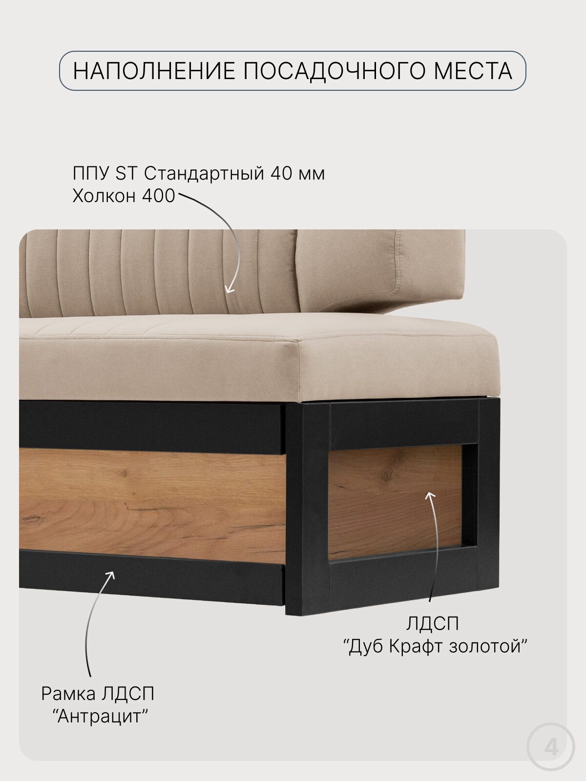 Универсальный кухонный диван "Орион" сочетает в себе элегантный дизайн и функциональность. Изготовленный из качественных материалов — фанеры и ЛДСП с наполнителем из пенополиуретана, он обеспечивает превосходный комфорт и долговечность. Обивка из искусственного велюра добавляет изысканности и легко вписывается в любое помещение, будь то дом, офис или дача.
