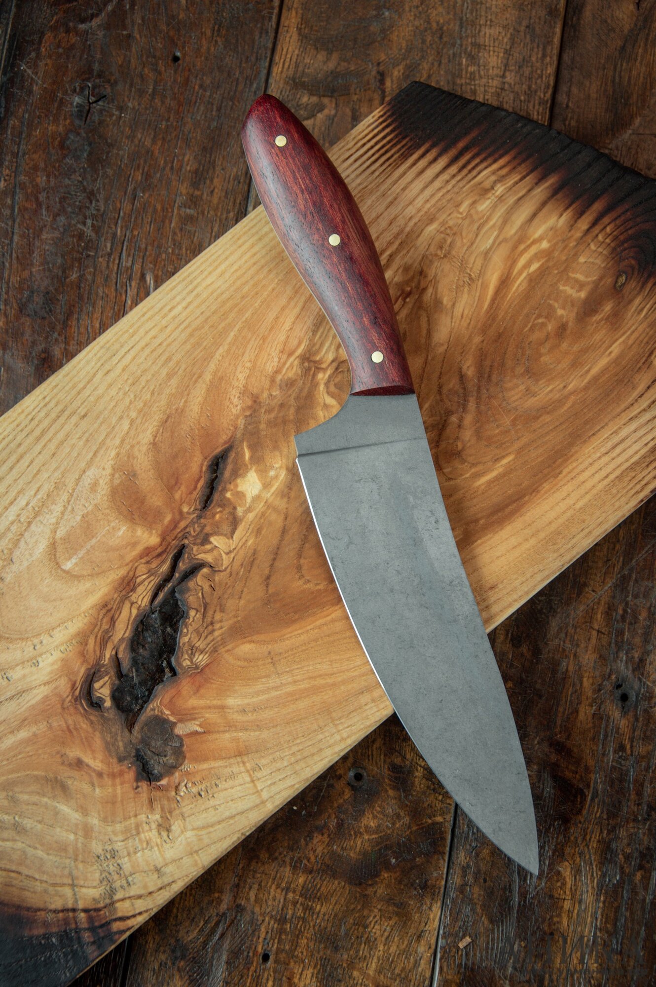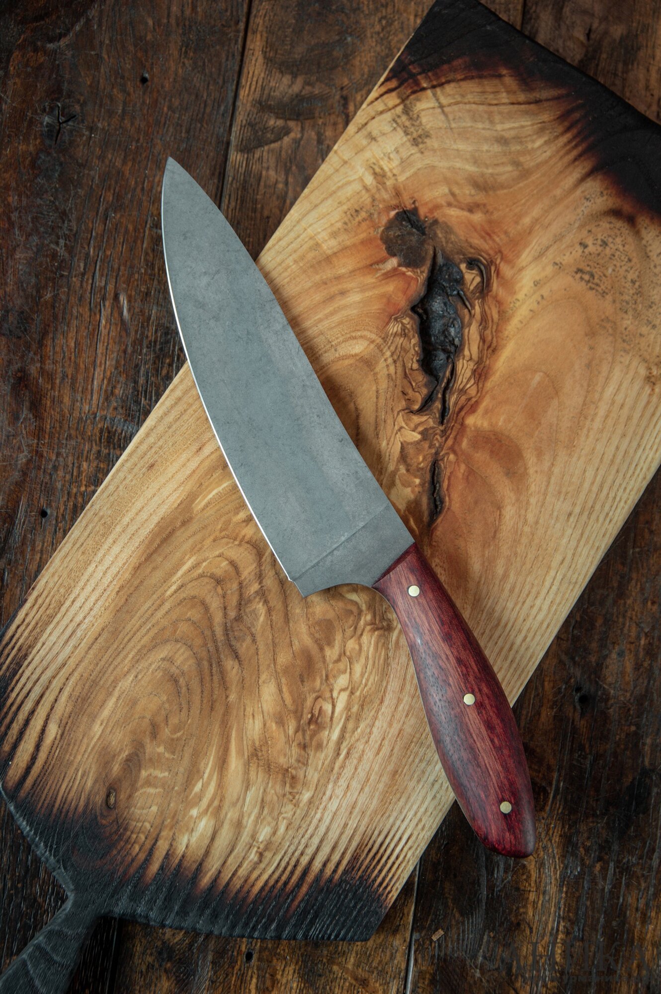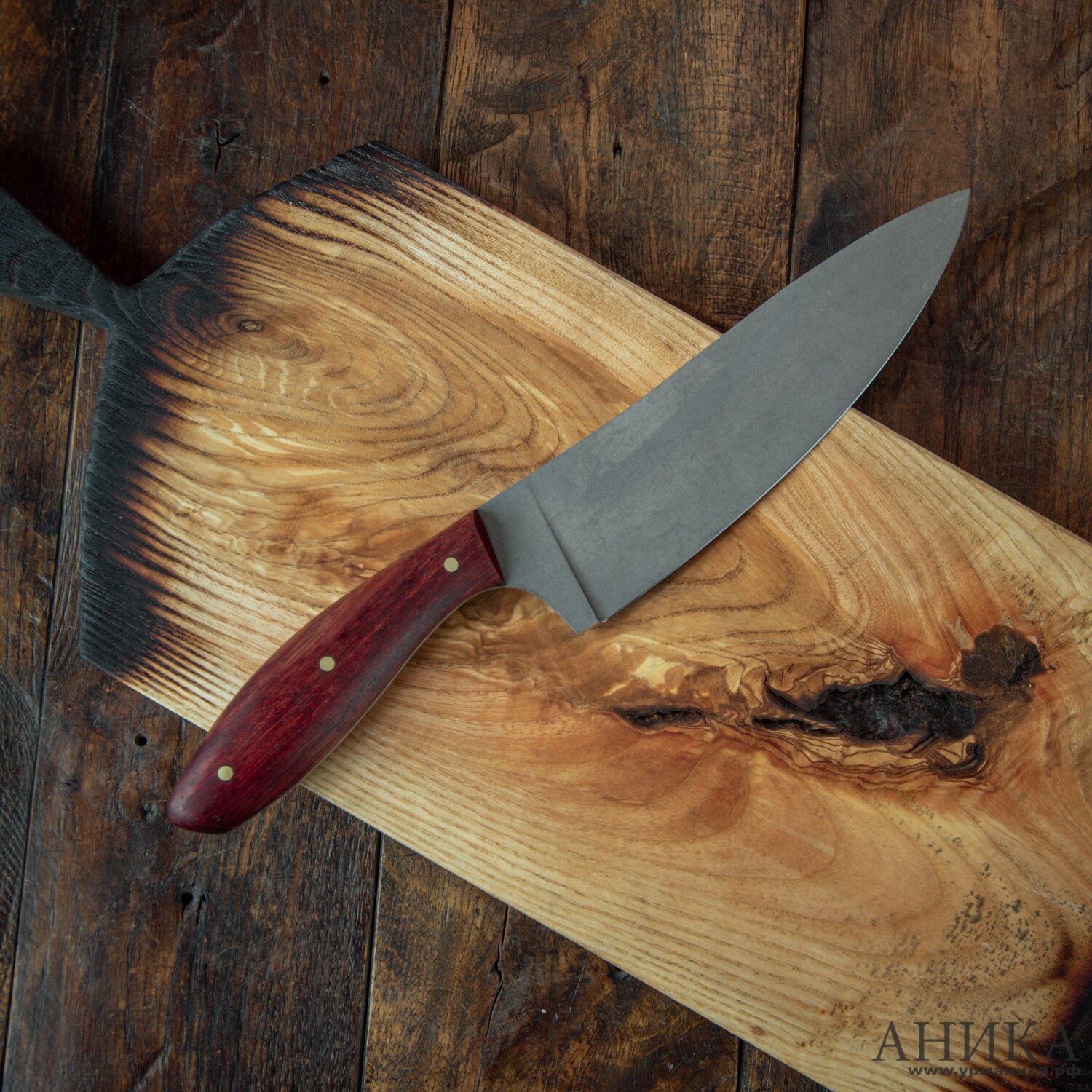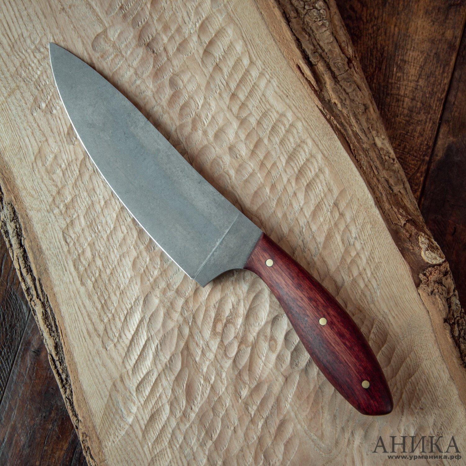 Купить Кухонный шеф-нож, обкладки бубинго, финиш стоунвош, сталь 65Х13, толщина 3мм, заточка 40град, Аника с доставкой по всей России.