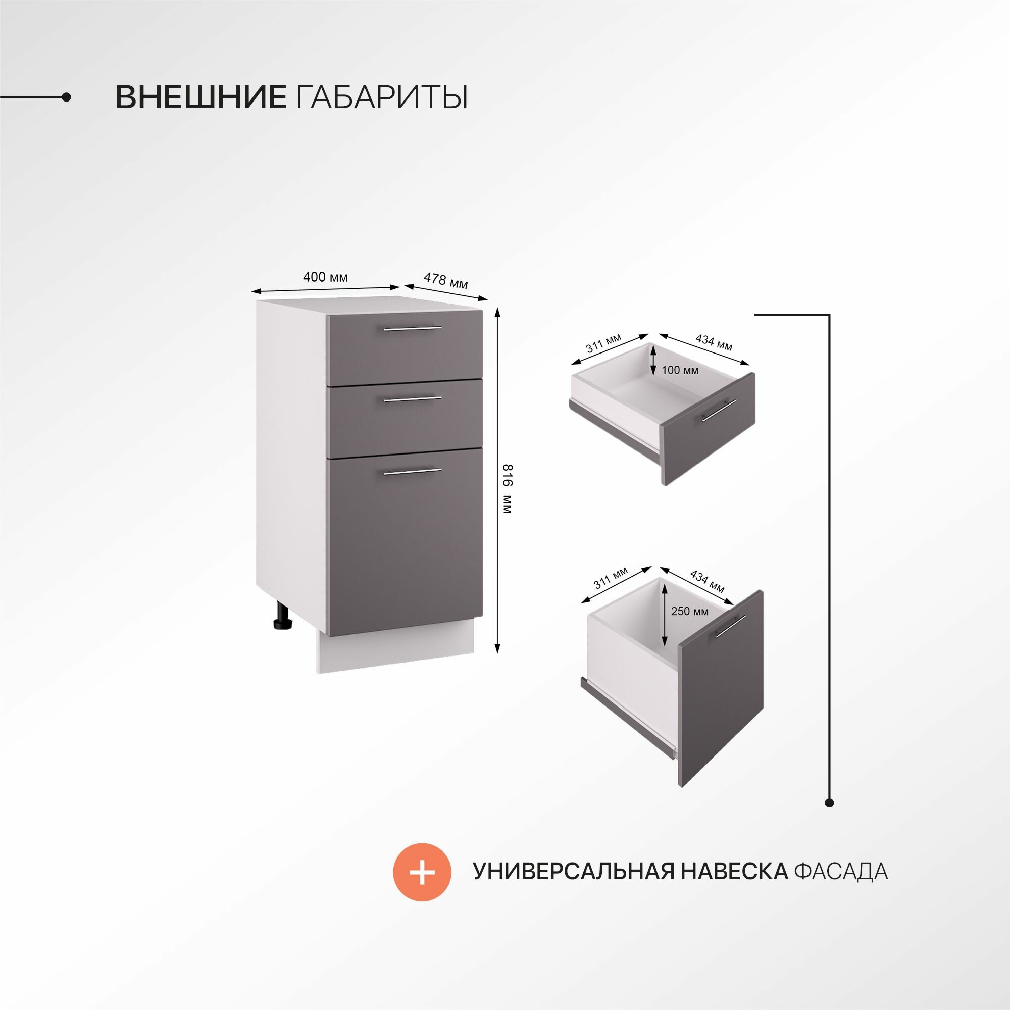 | Комплектация | Кухонный модуль, фурнитура, инструкция по сборке |