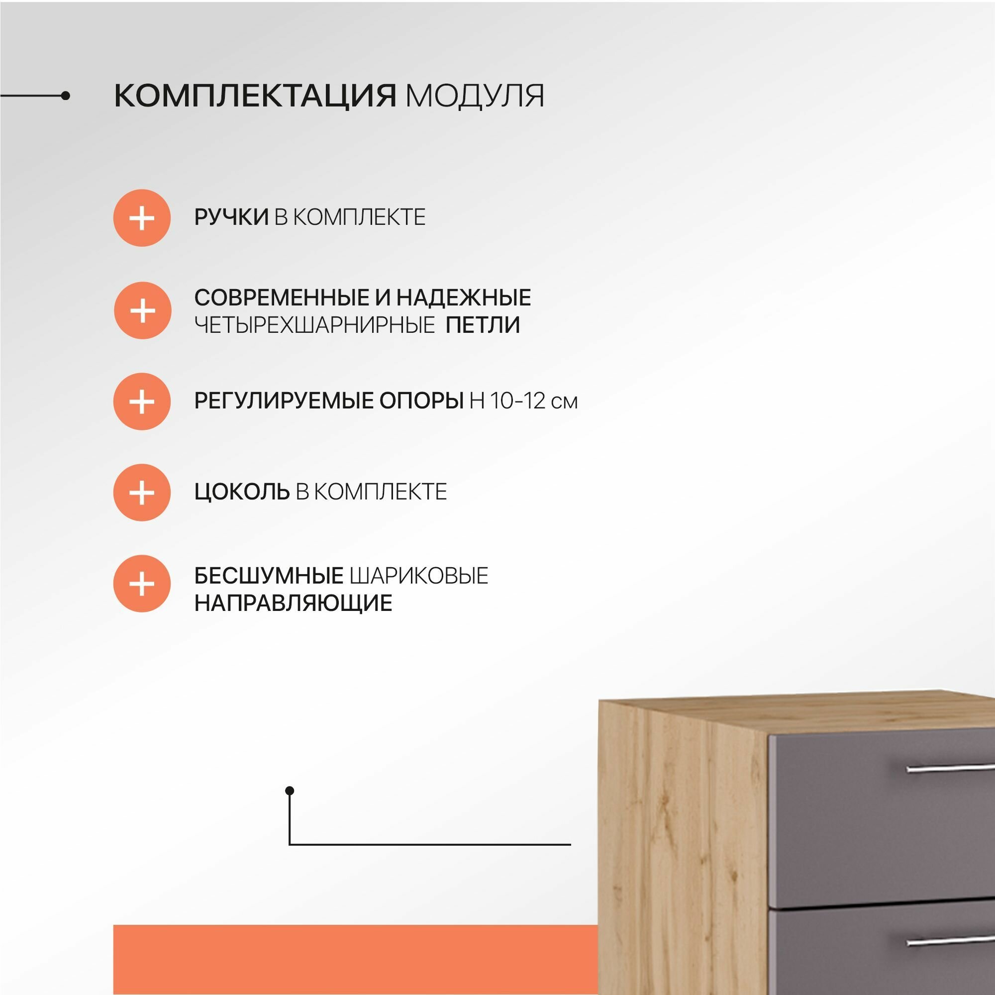 | Комплектация | Кухонный модуль, фурнитура, инструкция по сборке |