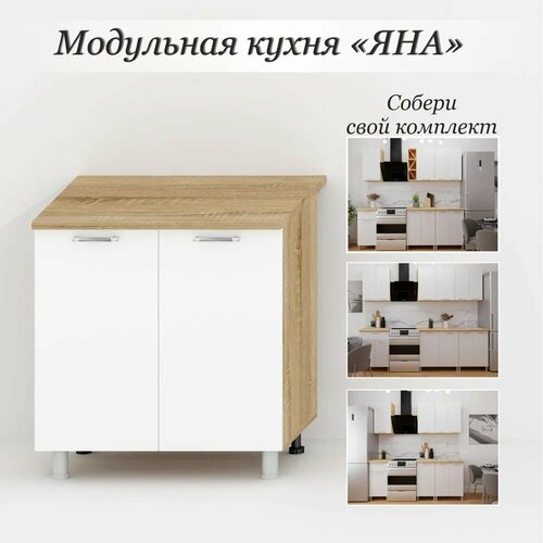 Изготовлен шкаф кухонный из высококачественной ЛДСП. Материал стойкий к износу, не боится воздействий низкими/высокими температурами, влагой, а также делает изделие легким в уходе и долговечным. Деревянный модуль кухонный напольный 80 см удобен в эксплуатации. Шкаф с полкой на кухню обладает корпусом в цвете дуб сонома и фасадами белого цвета. Напольный кухонный модуль оснащен двумя распашными дверцами. Шкаф с полкой позволяет разместить множество разных вещей: специи, крупы и т. д. Шкаф напольный на кухню из коллекции Яна имеет компактные размеры. Изделие обладает легким весом и поэтому оно не перегружает пол и обеспечивает безопасность при эксплуатации. Кухня Яна прекрасно впишется в любой интерьер. Она отлично будет смотреться в любой квартире и студии. Правильные линии и спокойные тона поддержат в Вашем доме семейный уют.