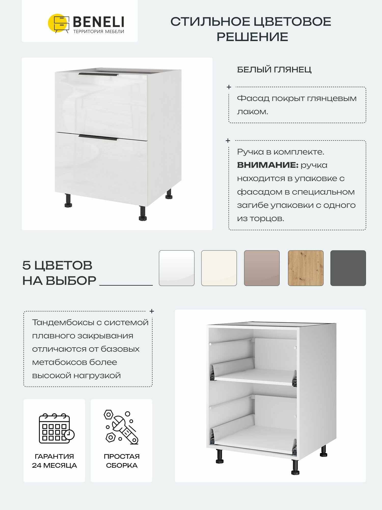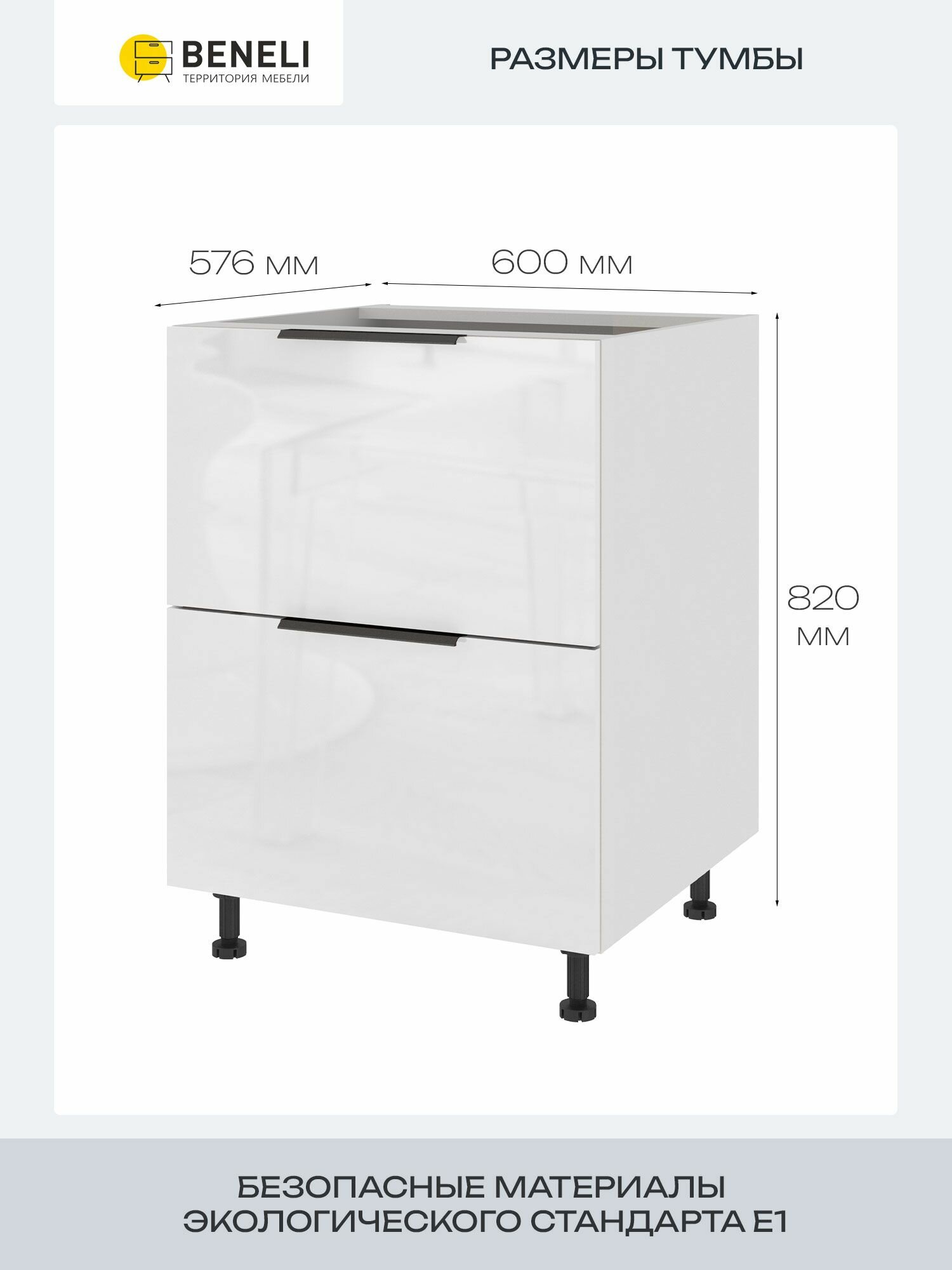 Кухонный шкаф напольный с 2 ящиками Beneli Color, 60х57.6х82 см, белый глянец, ЛДСП: сравнение цен, характеристики, фото, актуальное наличие и цены.