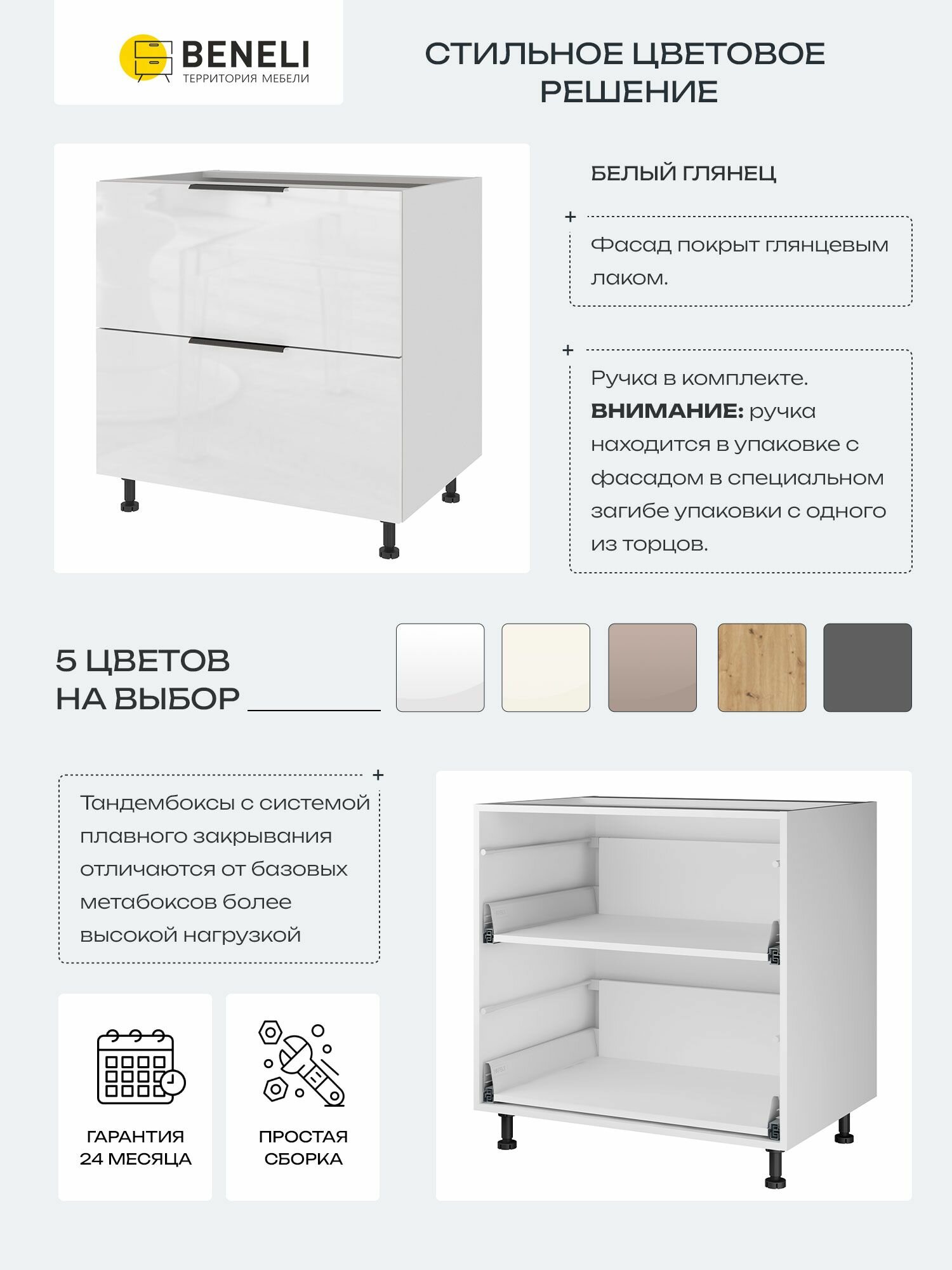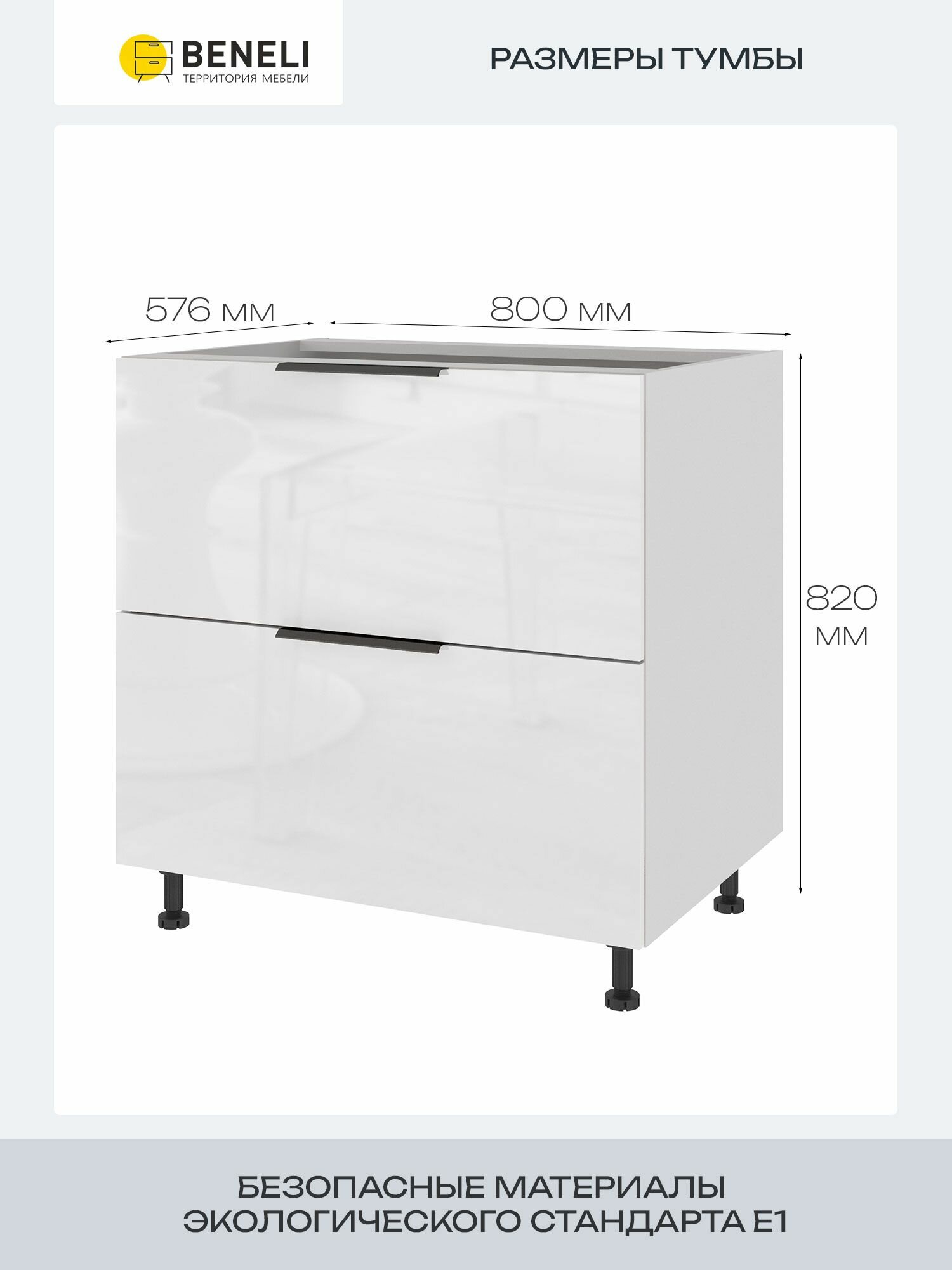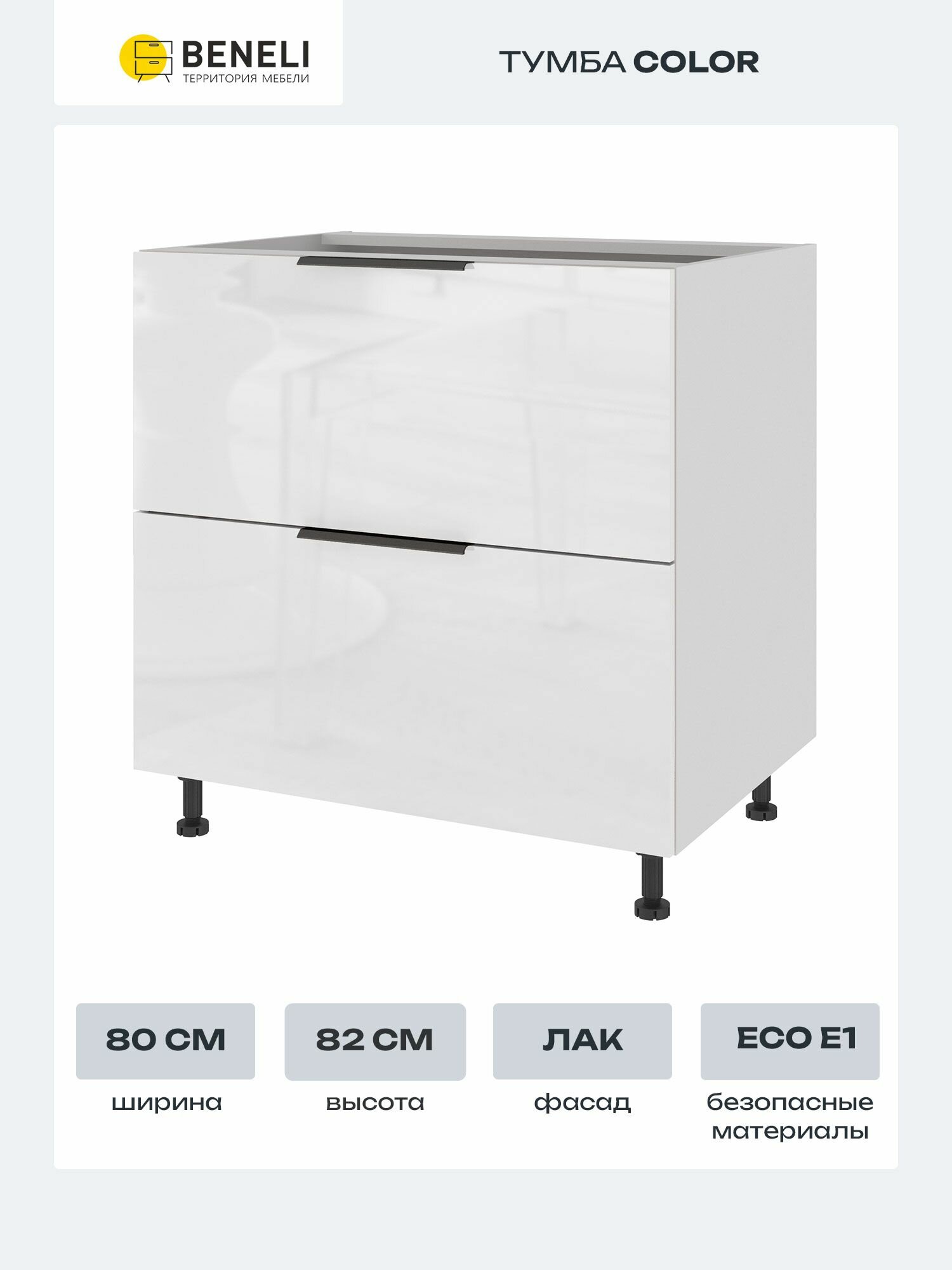 Кухонный шкаф напольный с 2 ящиками Beneli Color, 80х57.6х82 см, белый глянец, ЛДСП: сравнение цен, характеристики, фото, актуальное наличие и цены.