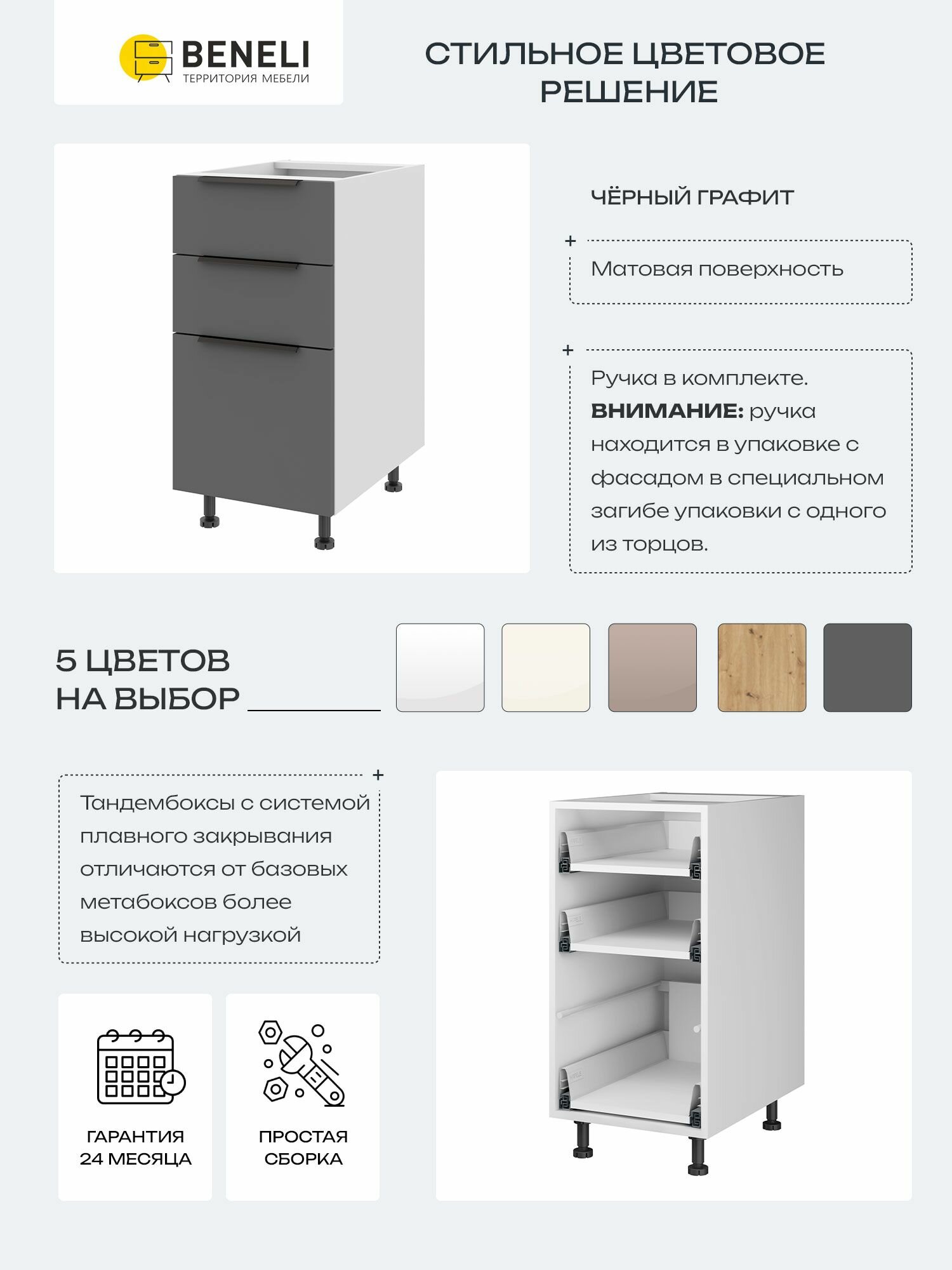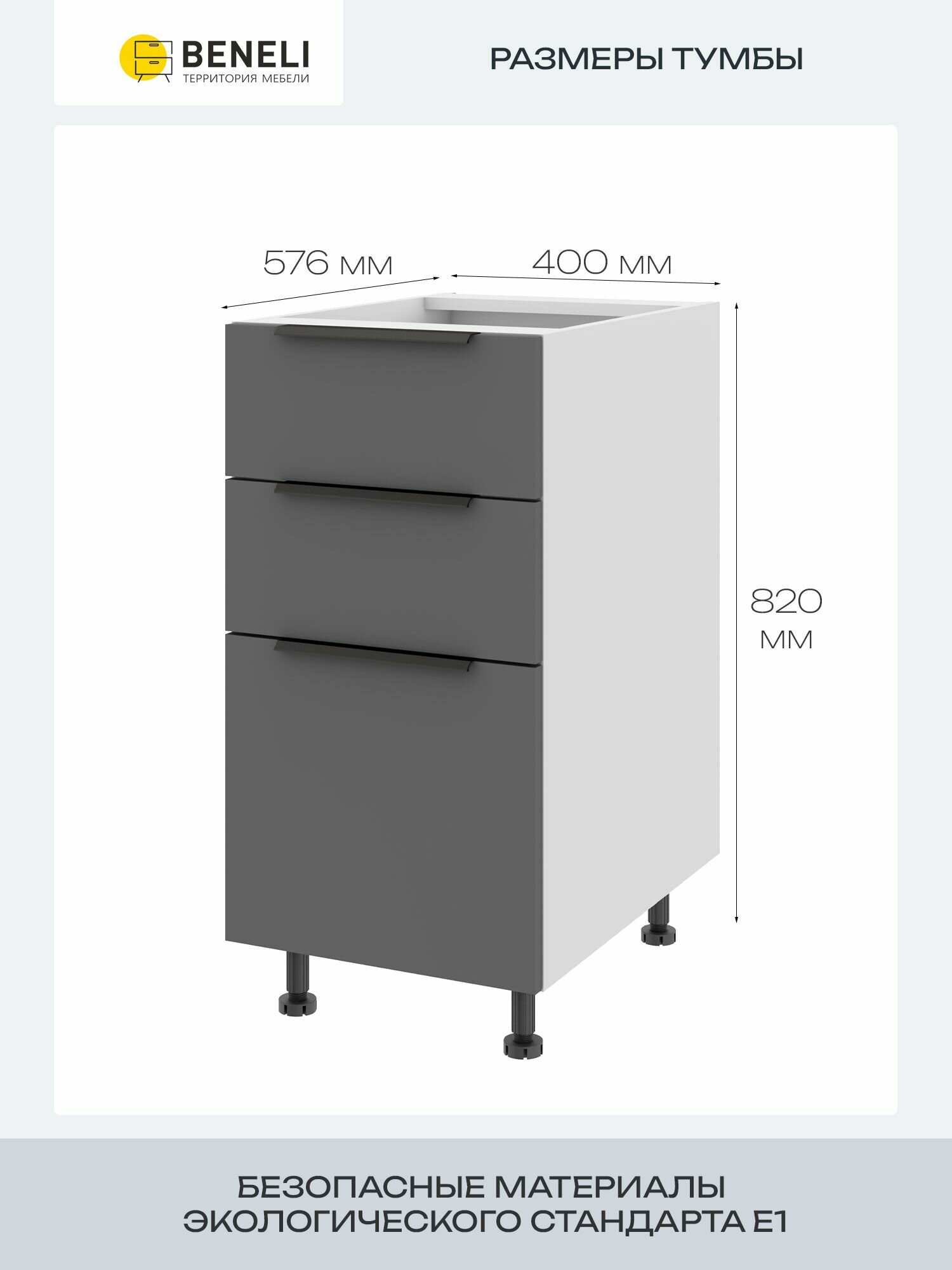 Кухонный шкаф напольный с 3 ящиками Beneli Color, 40х57.6х82 см, черный графит, ЛДСП: сравнение цен, характеристики, фото, актуальное наличие и цены.