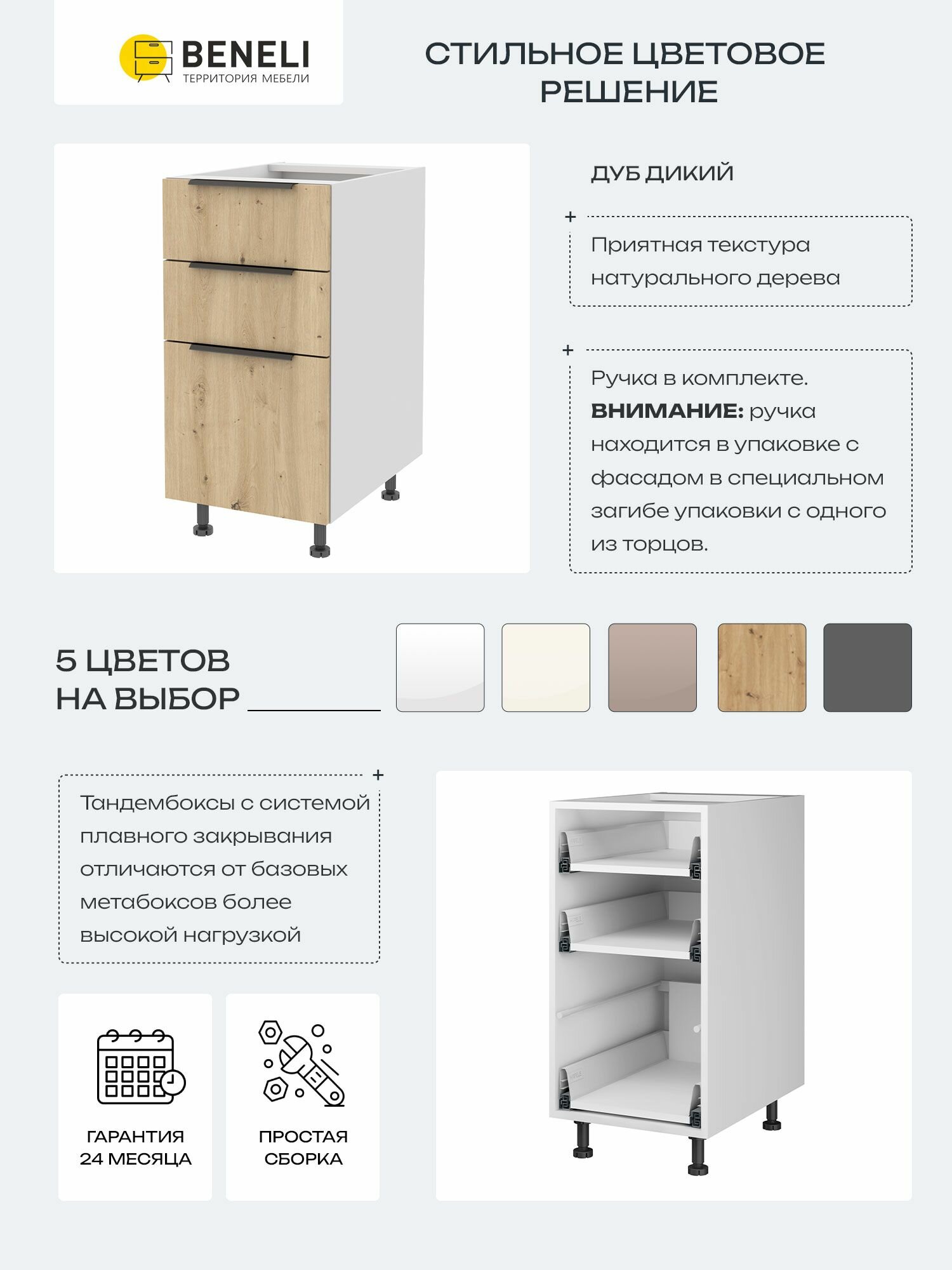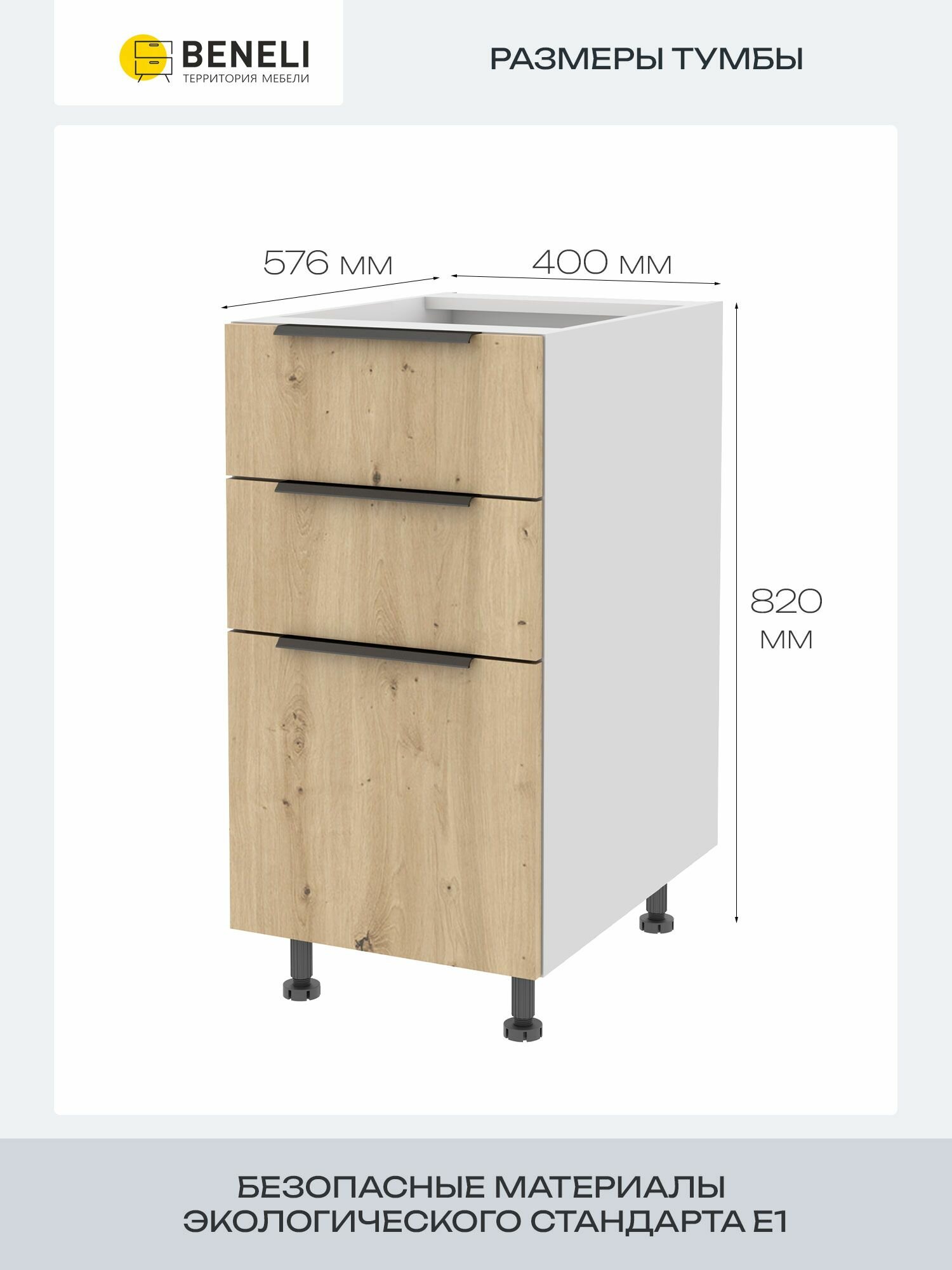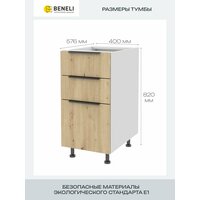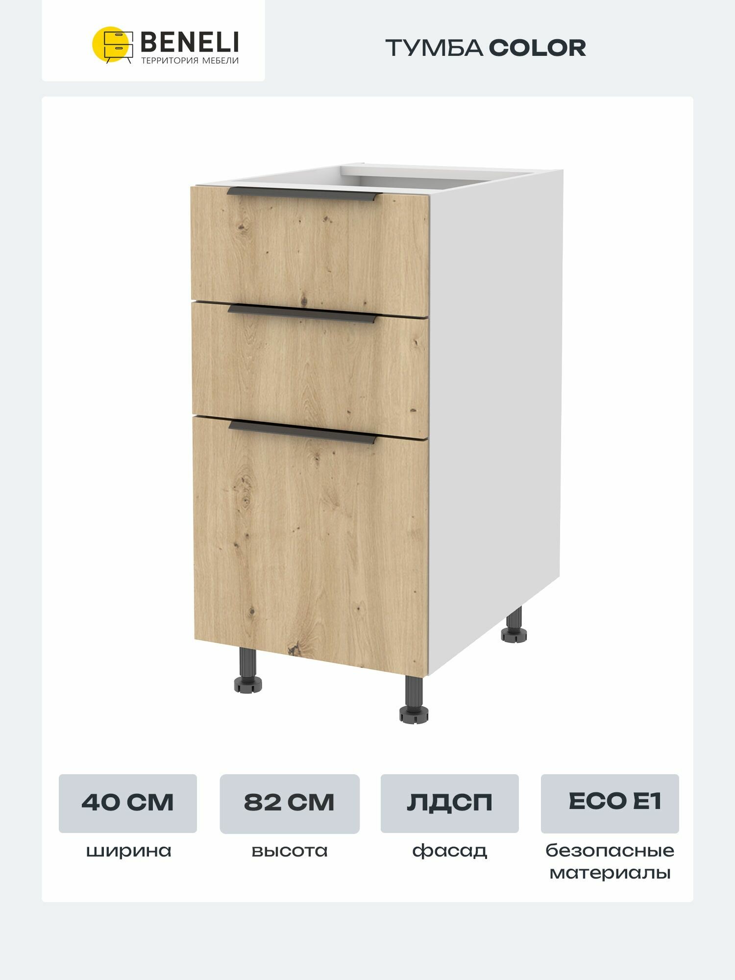 Купить Кухонный шкаф напольный с 3 ящиками Beneli Color, 40х57.6х82 см, дуб дикий, ЛДСП с доставкой по всей России.