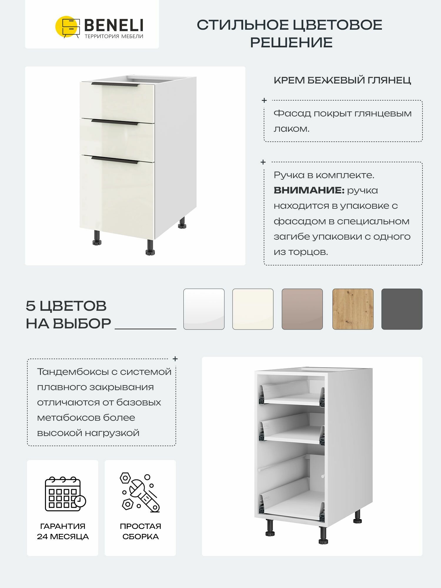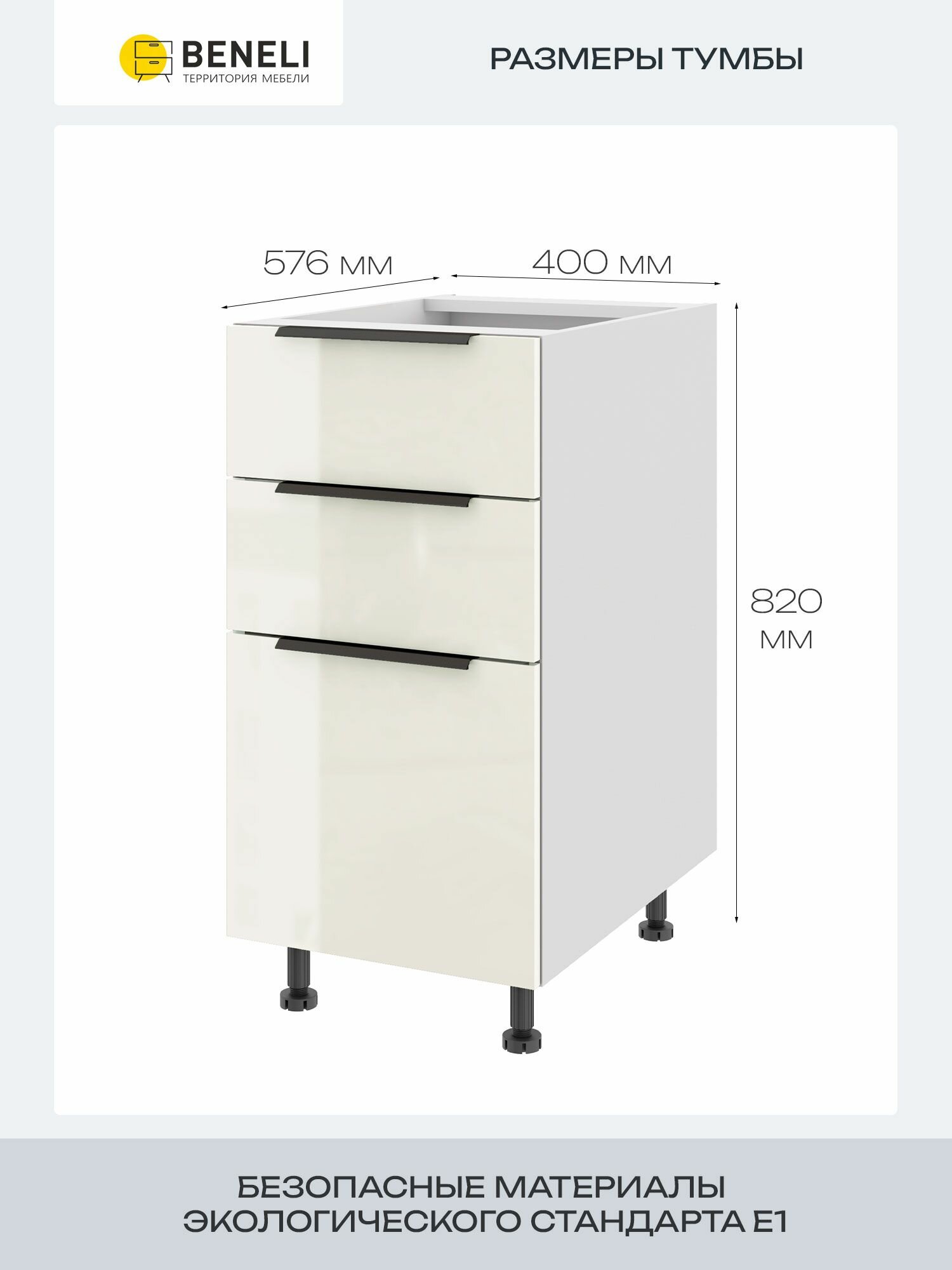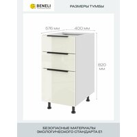 Кухонный шкаф напольный с 3 ящиками Beneli Color, 40х57.6х82 см, крем бежевый глянец, ЛДСП: сравнение цен, характеристики, фото, актуальное наличие и цены.