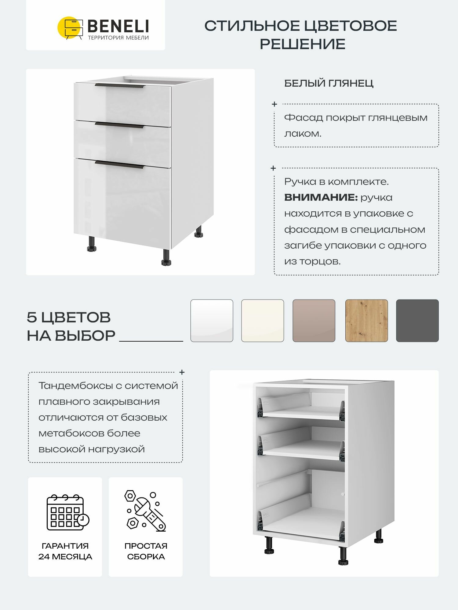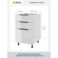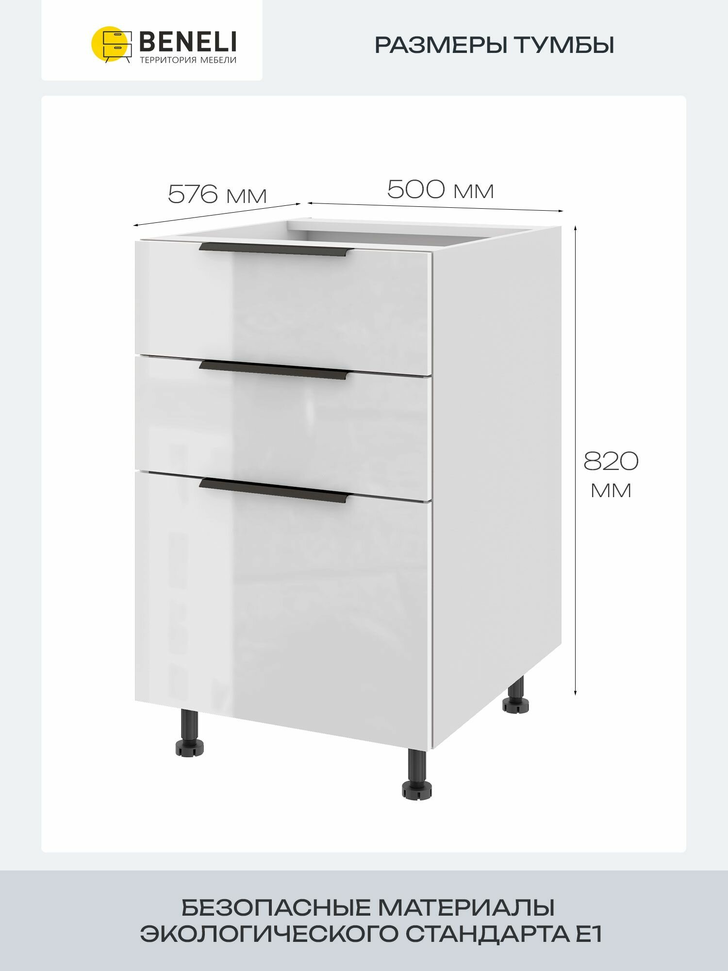 Кухонный шкаф напольный с 3 ящиками Beneli Color, 50х57.6х82 см, белый глянец, ЛДСП: сравнение цен, характеристики, фото, актуальное наличие и цены.