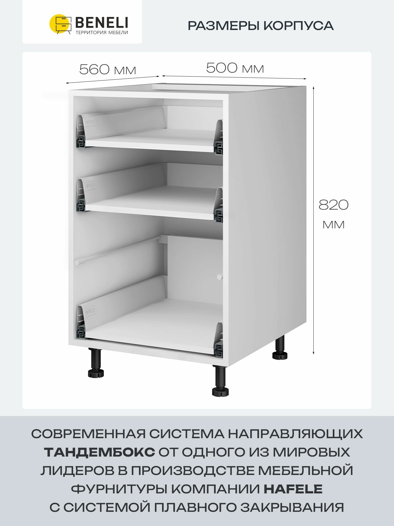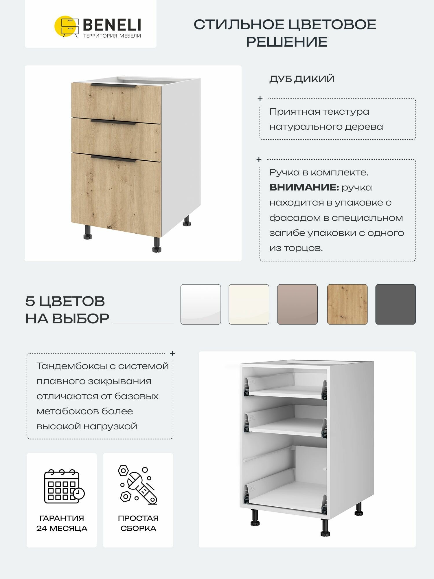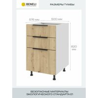 Купить Кухонный шкаф напольный с 3 ящиками Beneli Color, 50х57.6х82 см, дуб дикий, ЛДСП с доставкой по всей России.