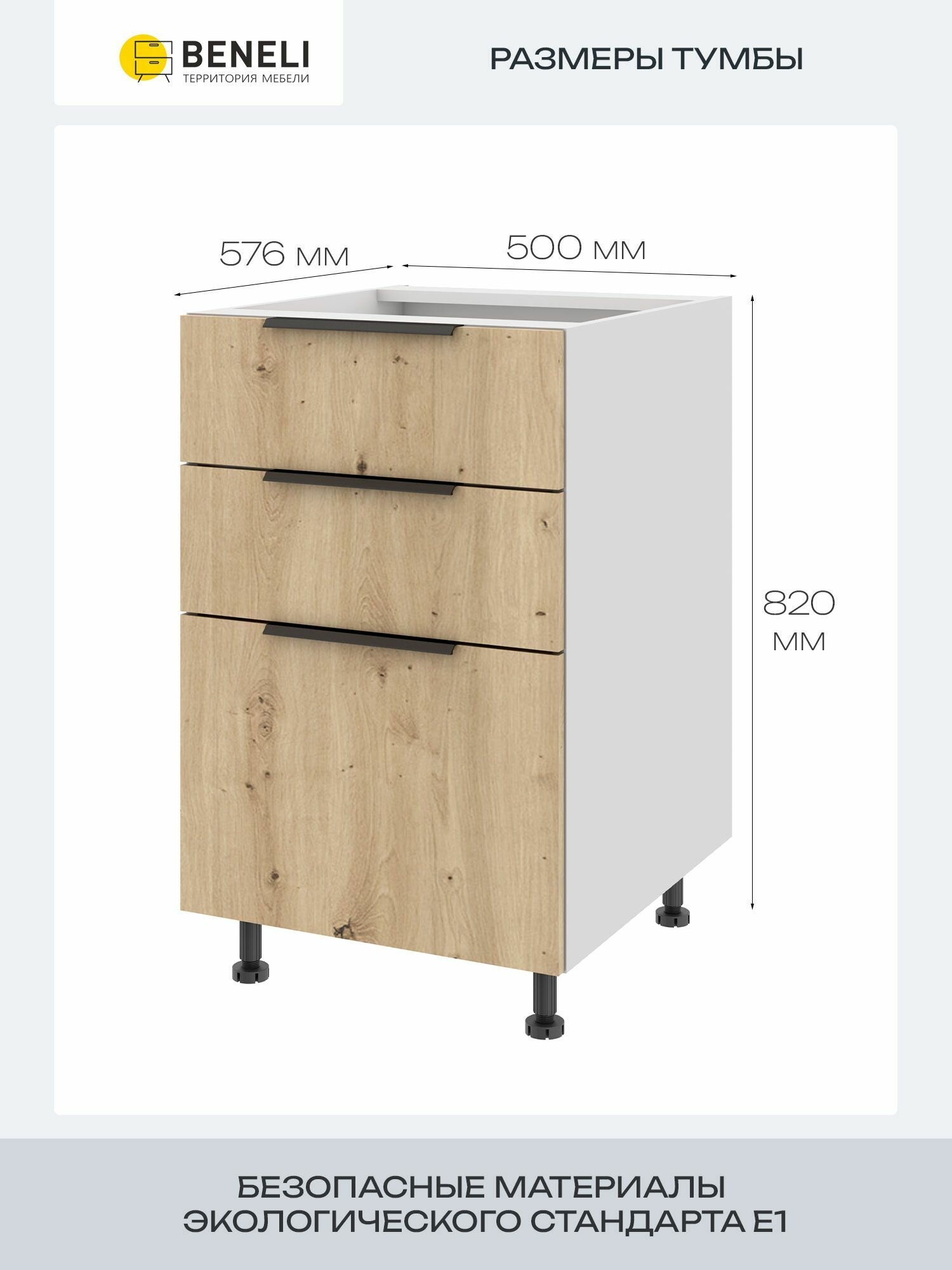 Кухонный шкаф напольный с 3 ящиками Beneli Color, 50х57.6х82 см, дуб дикий, ЛДСП: сравнение цен, характеристики, фото, актуальное наличие и цены.