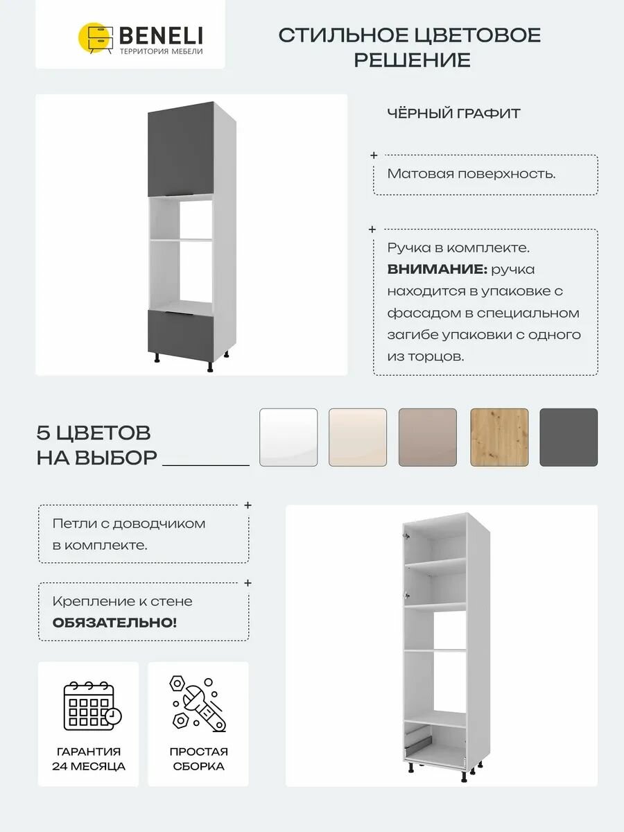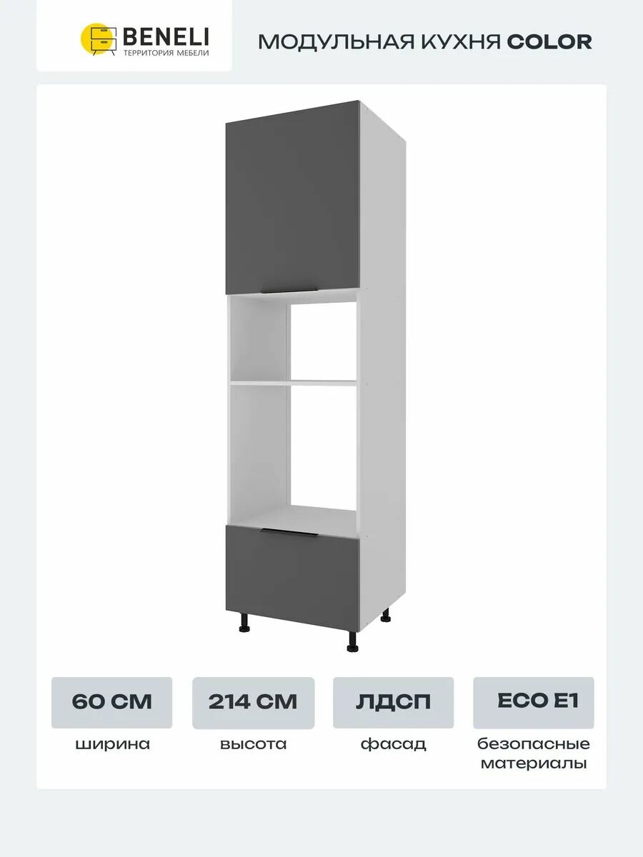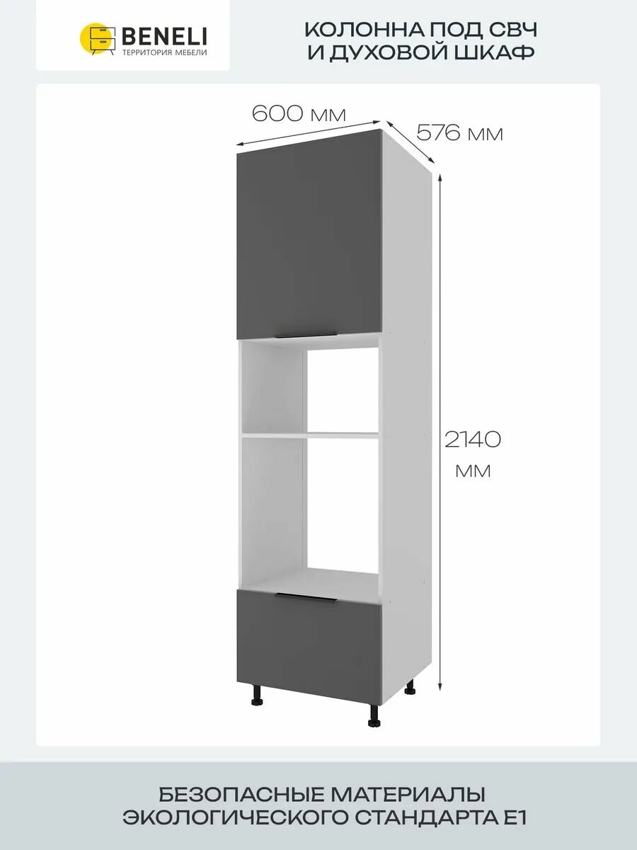 Кухонный модуль шкаф напольный колонна под свч и духовку Beneli COLOR Графит/Белый 60х576х214 см Кухонный шкаф пенал колонна под холодильник духовку свч и другую бытовую технику поможет воплотить Ваши мечты о стильном интерьере кухни, хостела, гостиницы, общежития и дачи. Шкаф пенал для кухни многофункциональный станет отличным выбором мебели для тех, кто ценит качество и эргономичность. Корпус, фасады и фурнитура от проверенных фабрик.