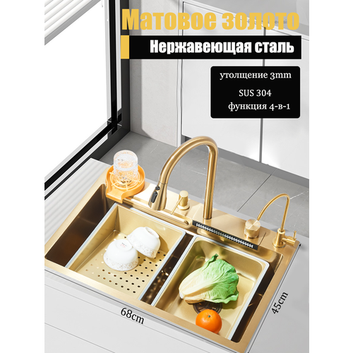 Купить Кухонный смеситель из нержавеющей стали 304 с матовым золотом, 68X45 см, полный комплект смывного устройства с доставкой по всей России. Кухонный смеситель из нержавеющей стали 304 с матовым золотом, 68X45 см, полный комплект смывного устройства: сравнение цен, характеристики, фото, актуальное наличие и цены.