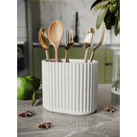 Купить Кухонный стакан Chloe Duo, подставка для столовых приборов, 10х13х8.5 см, бетон, белый глянцевый с доставкой по всей России.