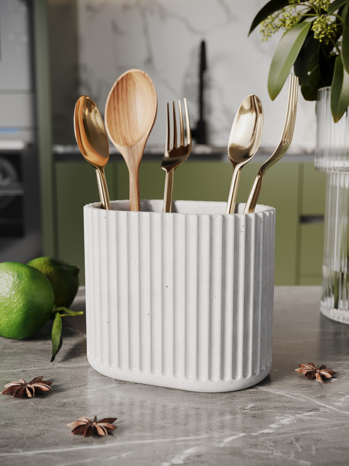 Кухонный стакан Chloe Duo, подставка для столовых приборов, 10х13х8.5 см, бетон, белый глянцевый: сравнение цен, характеристики, фото, актуальное наличие и цены.