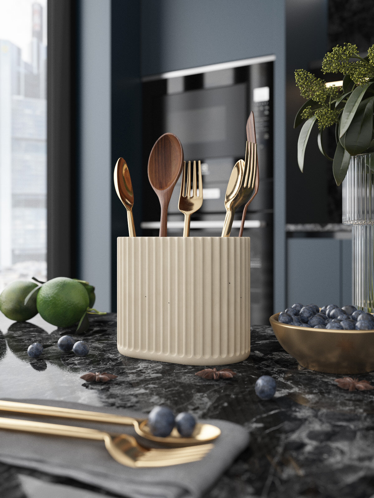 Купить Кухонный стакан Chloe Duo, подставка для столовых приборов, 10х13х8.5 см, бетон, бежевый матовый с доставкой по всей России.
