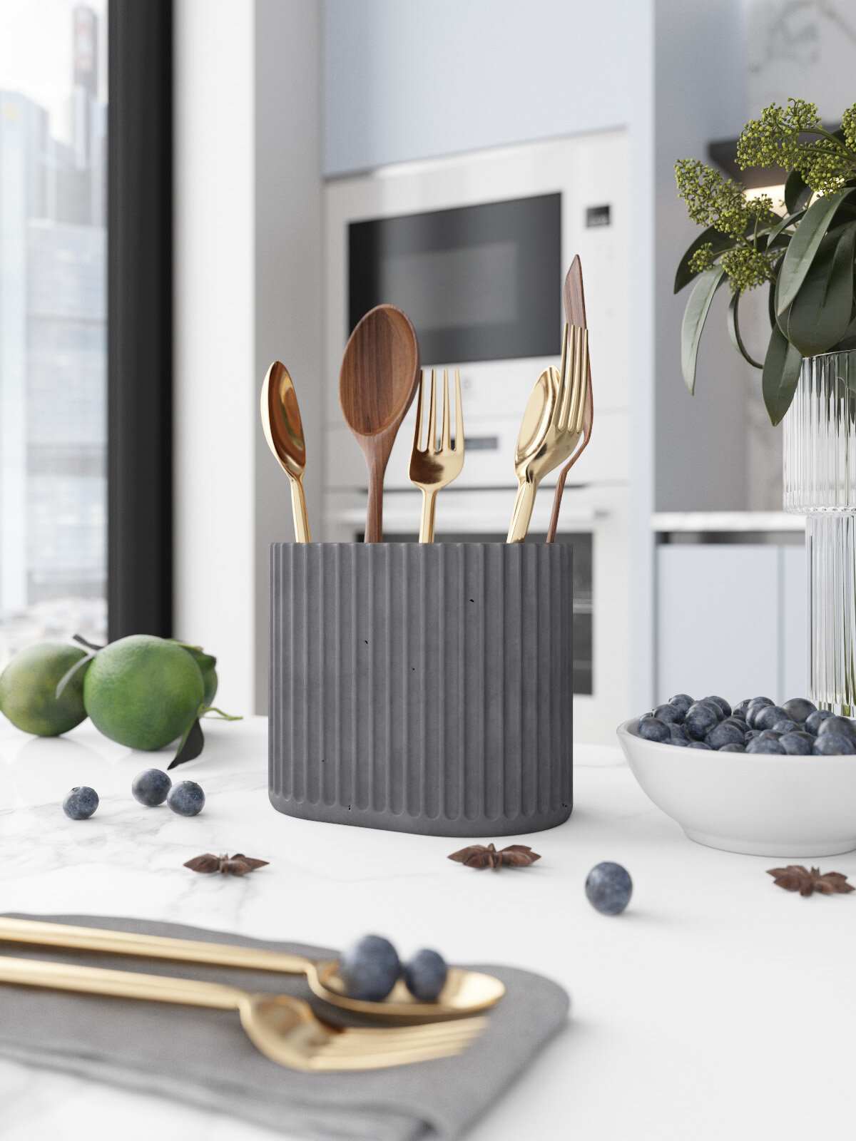 Купить Кухонный стакан Chloe Duo, подставка для столовых приборов, 10х13х8.5 см, бетон, черный матовый с доставкой по всей России.