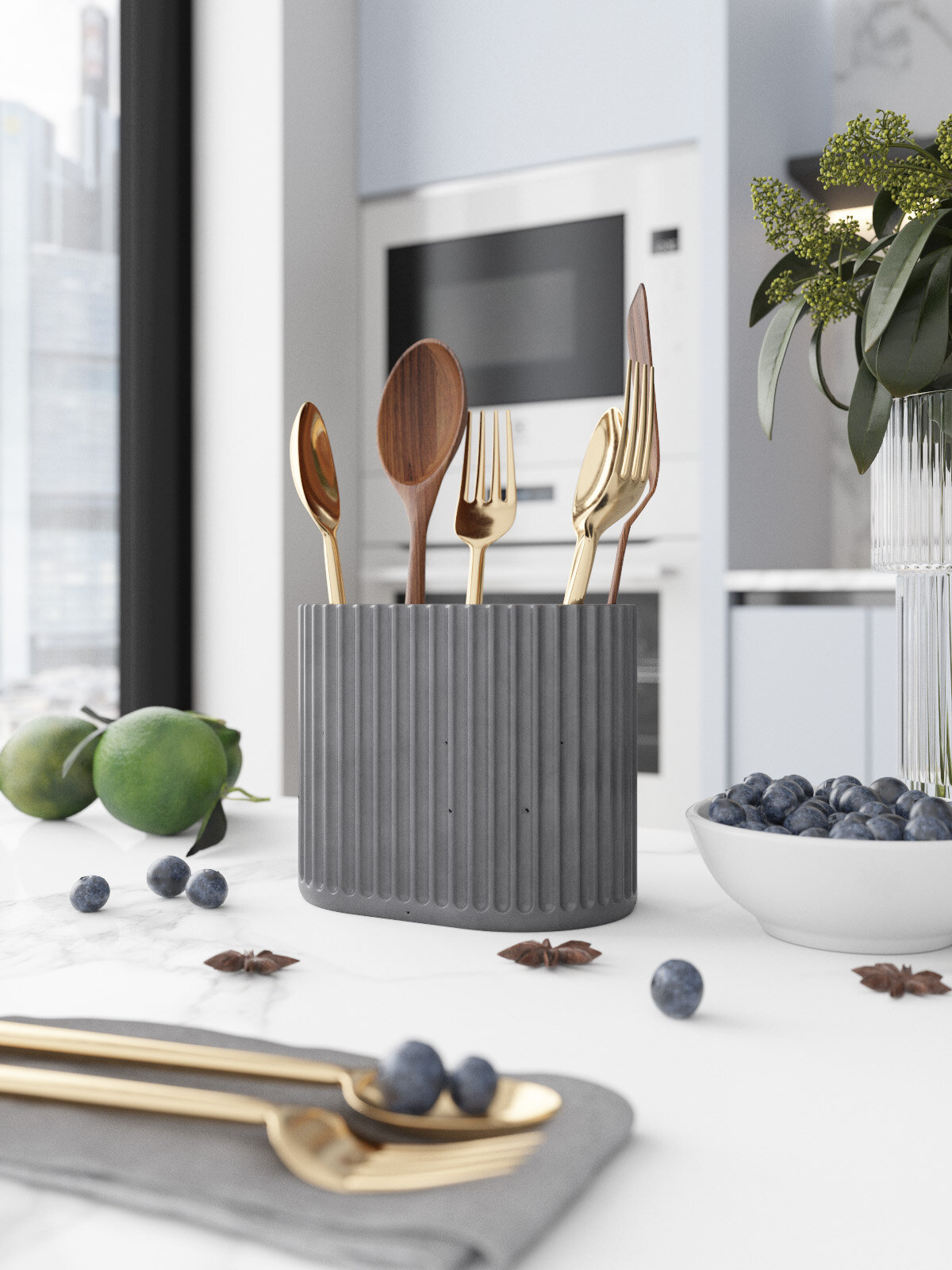 Кухонный стакан Chloe Duo, подставка для столовых приборов, 10х13х8.5 см, бетон, чёрный глянцевый: сравнение цен, характеристики, фото, актуальное наличие и цены.