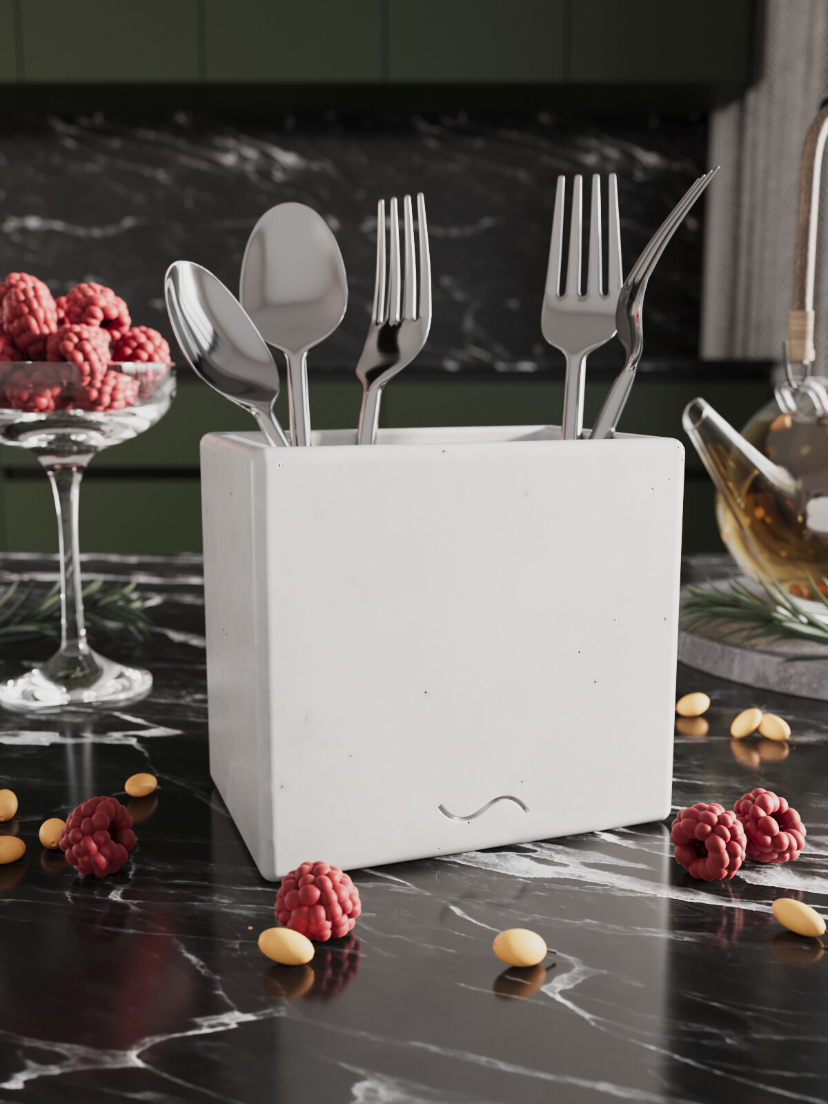 Купить Кухонный стакан Emily Duo, подставка для столовых приборов, 12х8х11 см, бетон, белый глянцевый с доставкой по всей России.