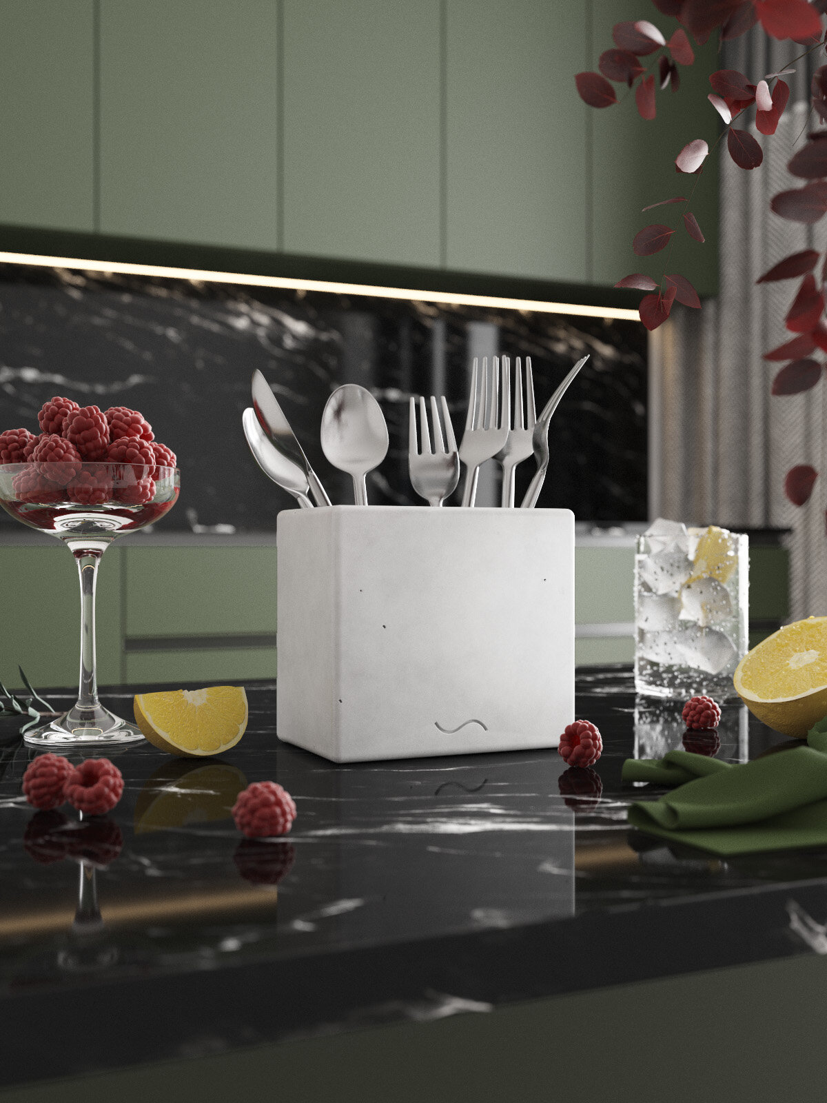 Кухонный стакан Emily Duo, подставка для столовых приборов, 12х8х11 см, бетон, белый глянцевый: сравнение цен, характеристики, фото, актуальное наличие и цены.